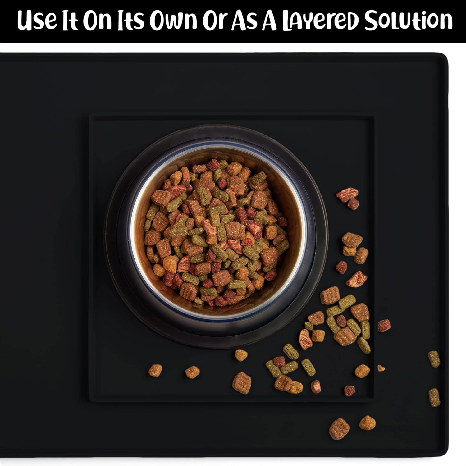 - Less Mess & Less Stress: Super high edge (0.6”) of DogBuddy Dog Food Mat keeps the spilled food and water on the mat and away from your beautiful floor. Silicone is naturally 100% waterproof, so what happens on the mat stays on the mat.