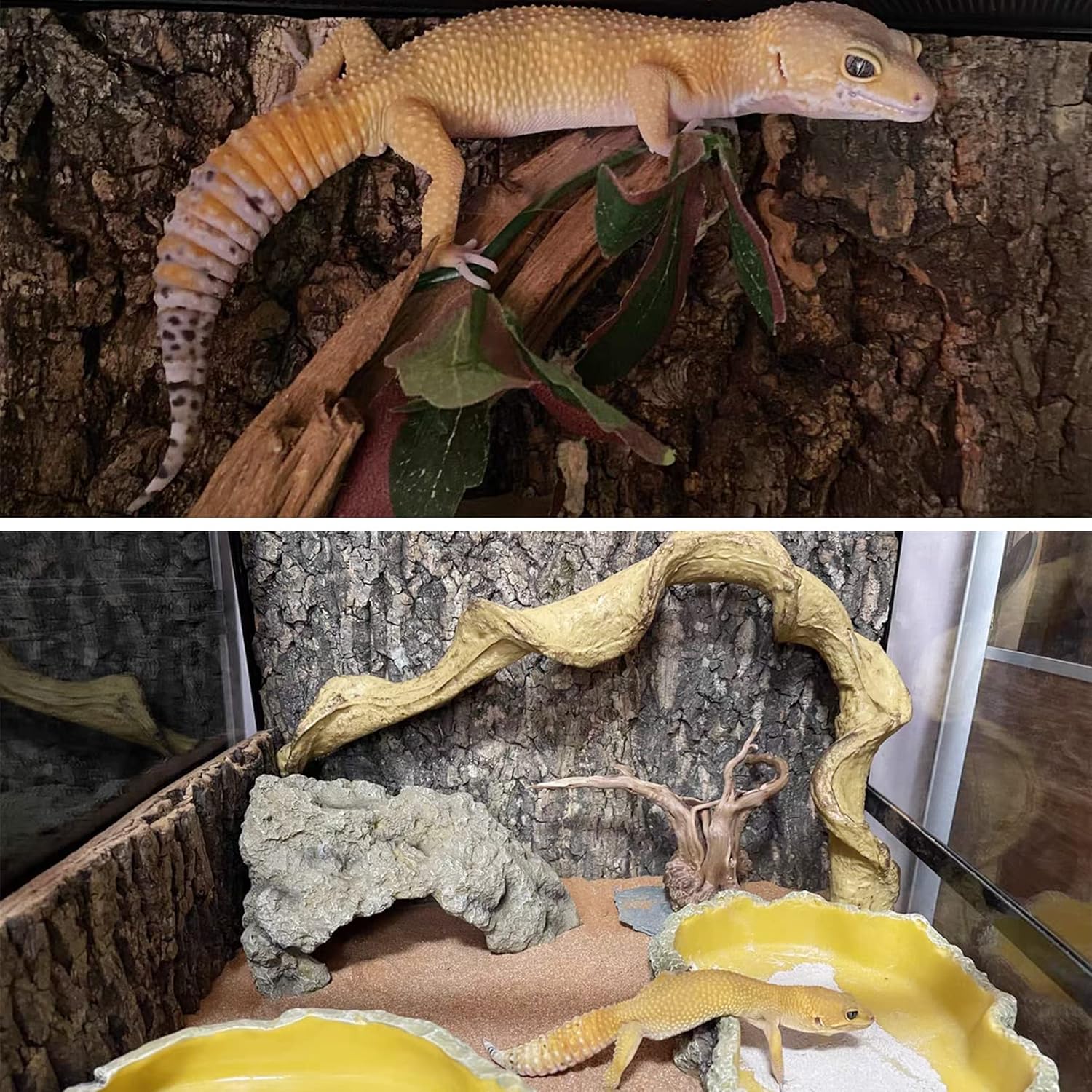 - [Multiple Functions]: Cork bark for reptiles can be used as a crawling mat for reptiles to protect pets from moisture. It can also be used as a decorative background for the tank to give pets a natural and beautiful habitat