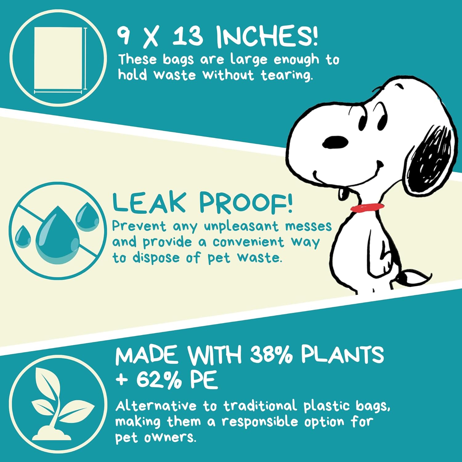 - Peanuts Themed Designs – Featuring adorable Peanuts characters, including Snoopy, these waste bags bring some fun to your dog-walking routine.