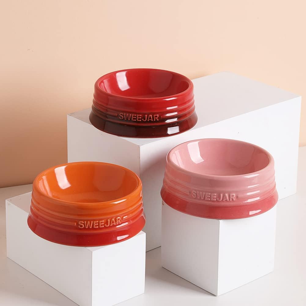 - Non Skidding - SWEEJAR dog bowls are made of food grade porcelain, microwave & dishwasher safe, easy to clean. The ceramic is heavy to help keep the bowl upright when dog eat food. No messy floors to clean.