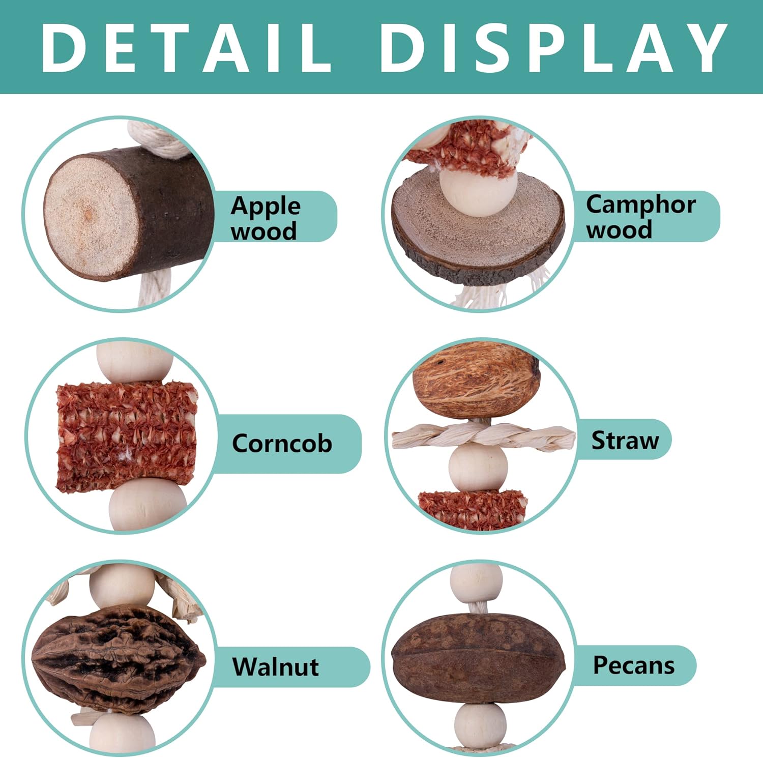 - Safe Materials: Our large parrot toys are made of natural wood, nuts, corn on the cob and other natural materials to attract parrots to bite, chew, climb and explore, completely handcrafted, durable, safe for pets and will not harm them.