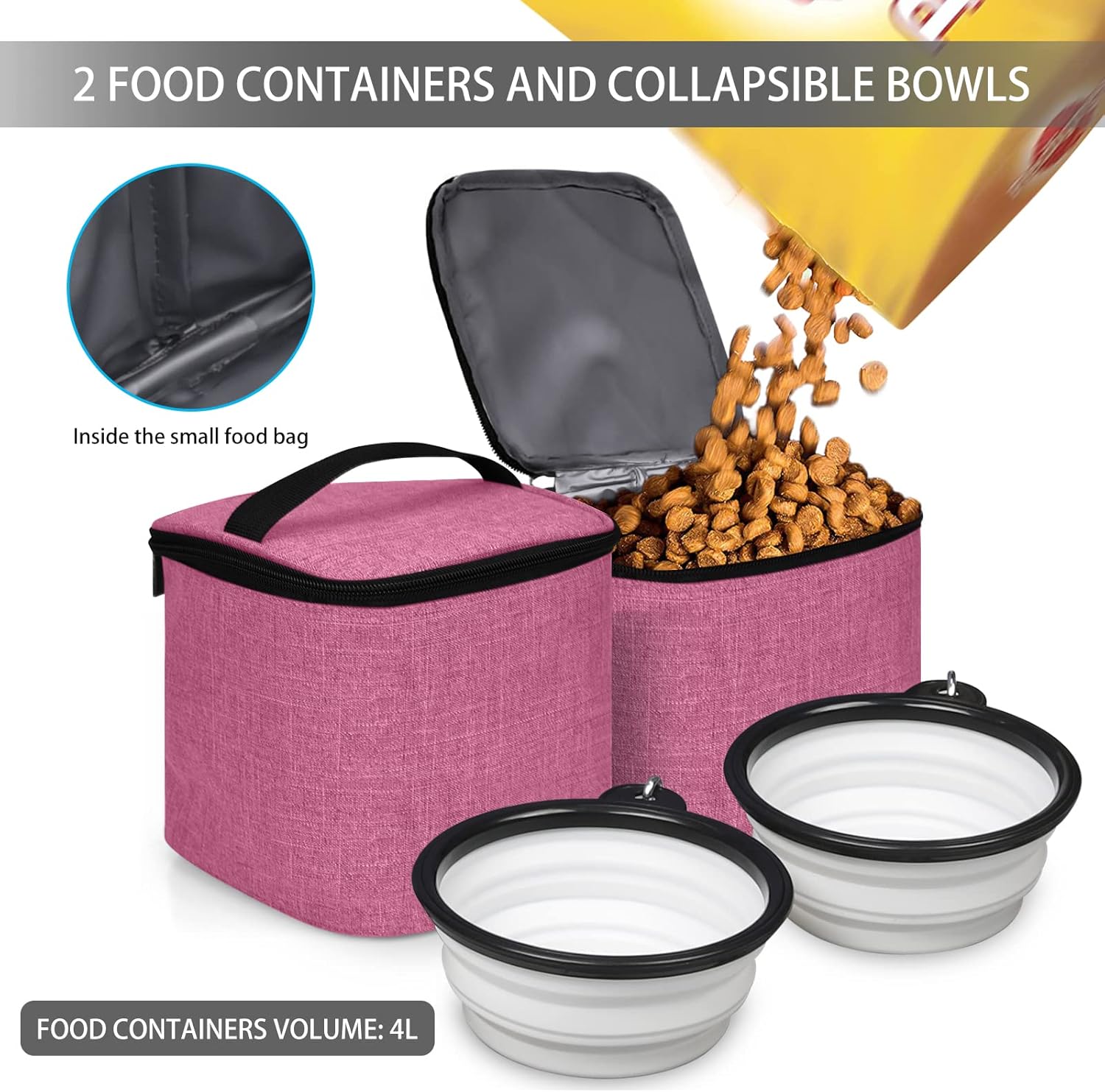 BAGLHER Pet Travel Bag, Double-Layer Pet Supplies Backpack (for All Pet Travel Supplies), Pet Travel Backpack with 2 Silicone Collapsible Bowls and 2 Food Baskets Pink