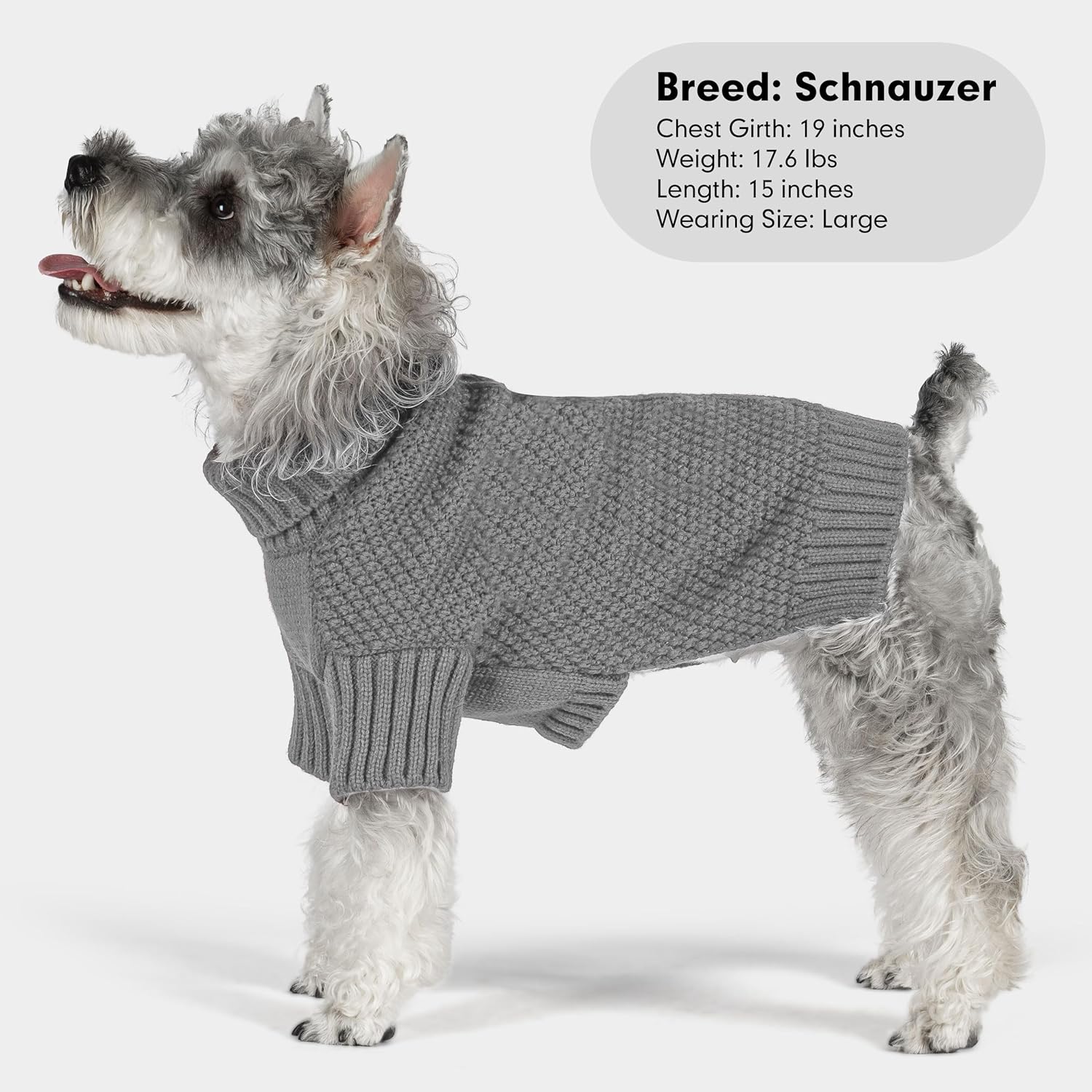 cyeollo Turtleneck Dog Sweater Knitted Cable Sweaters with Leash Hole Winter Pet Clothes Pet Small Dog Sweaters, Grey XL