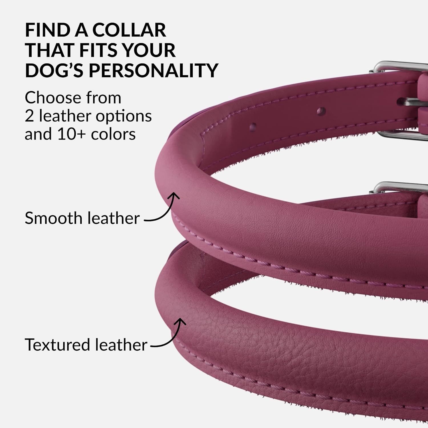 CollarDirect Rolled Leather Dog Collar, Soft Padded Round Puppy Collar, Handmade Genuine Leather Collar Dog Small Large Cat Collars 13 Colors (6 Inch, Pink Smooth)