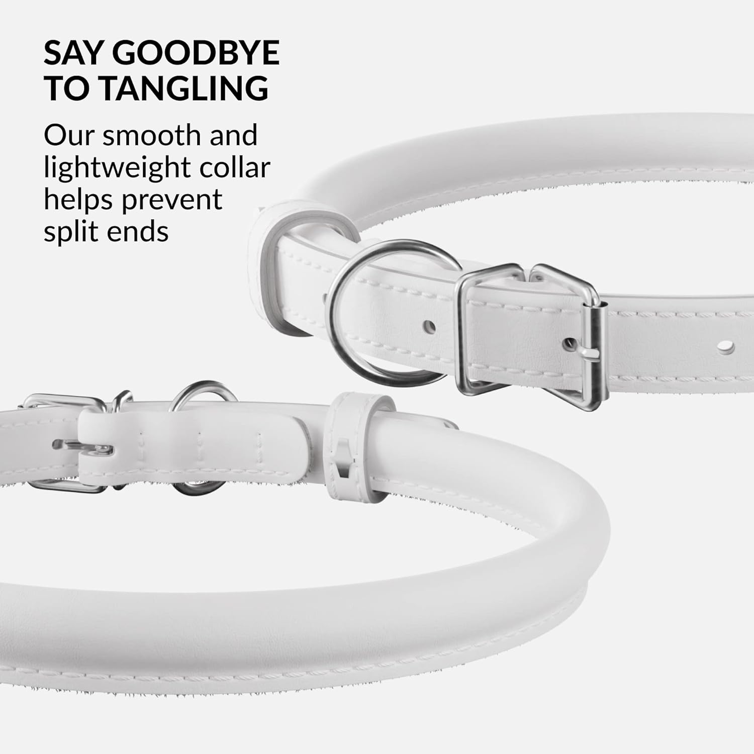 - SOFT ON LONG HAIR: Our lightweight, rolled thin dog collar is made from 100% genuine soft leather. A rolled leather dog collar helps with matting and tangling of all breeds, and leather dog collars are the standard groomer recommendation for breeds with long hair.