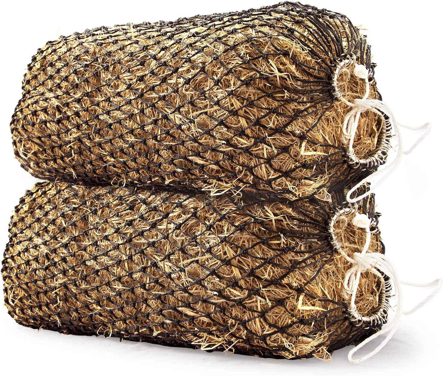 Bloomoak Slow Hay Net Feeder for Horses, Durable Soft Black PE 2/3 String Hay Bales Bags, Fit 36x18x18 to 47x25x17 Inches, Extends 50-64 Inches (2 1.6" Hole/2PC)