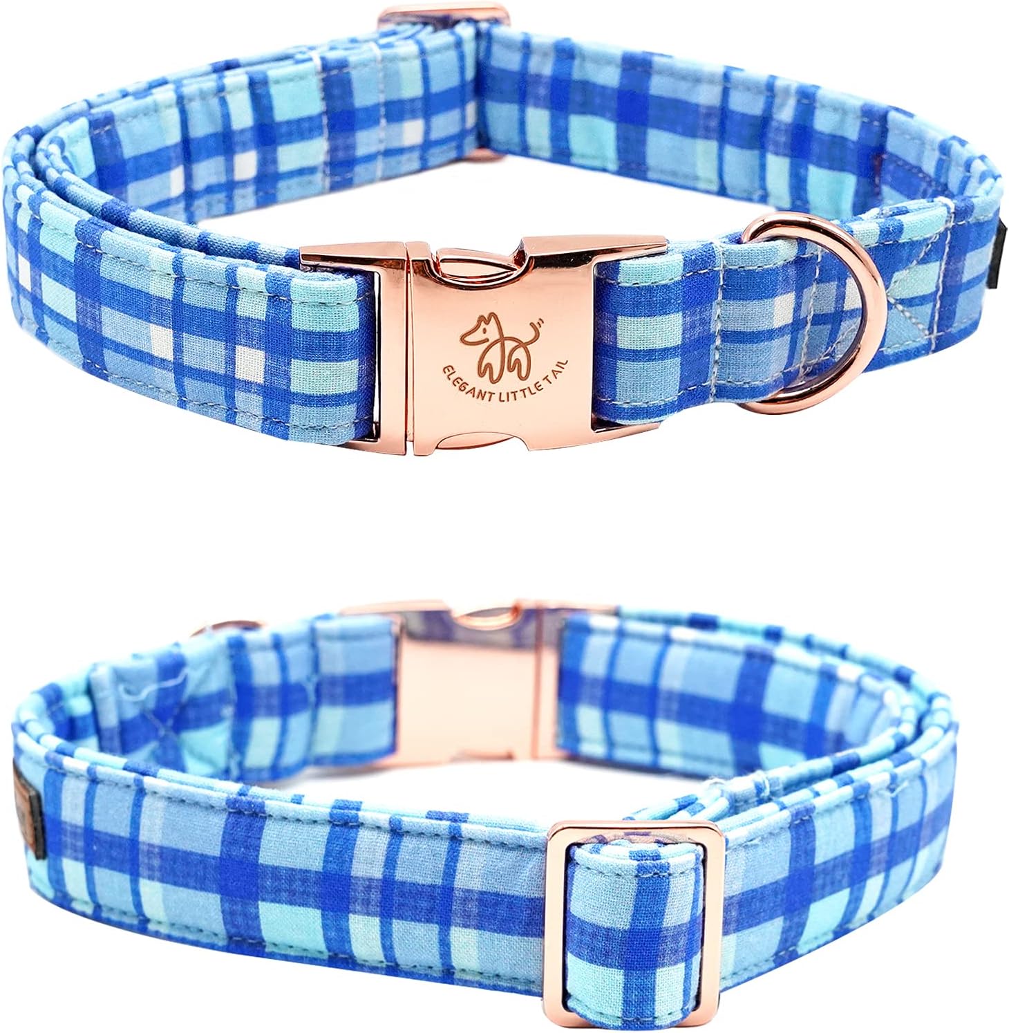 Elegant little tail Dog Collar with Bow - Blue Plaid Boy Dog Collar Cute Bowtie Pet Collar Adjustable Dog Collar for X-Small Puppy and Cat