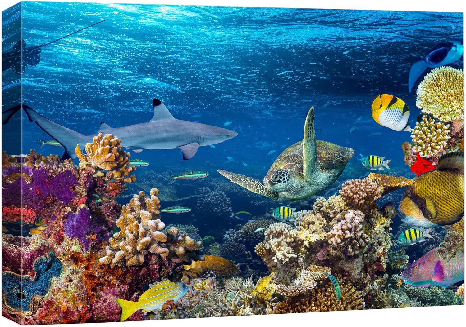 wall26 Canvas Print Wall Art Tropical Island Underwater Turtle Shark Nature Animals Photography Realism Rustic Scenic Landscape Wilderness Earth Colorful for Living Room, Bedroom, Office - 32"x48"