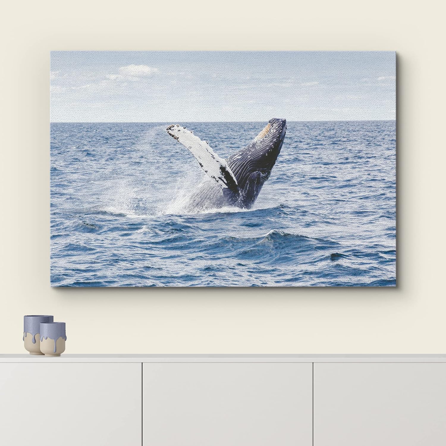 wall26 Canvas Print Wall Art Tropical Ocean Sea Water Horizon Blue Whale Nature Animals Photography Realism Rustic Scenic Landscape Wilderness Colorful for Living Room, Bedroom, Office - 24"x36"
