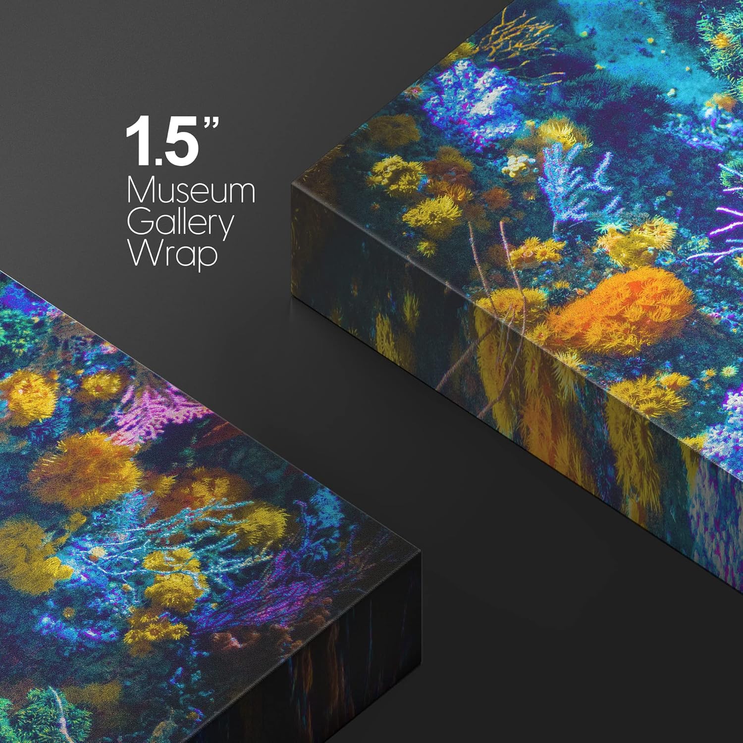 wall26 Canvas Print Wall Art Vibrant Neon Multicolor Anemone Coral Reef Nature Animals Photography Realism Rustic Scenic Landscape Wilderness Earth for Living Room, Bedroom, Office - 32"x48"