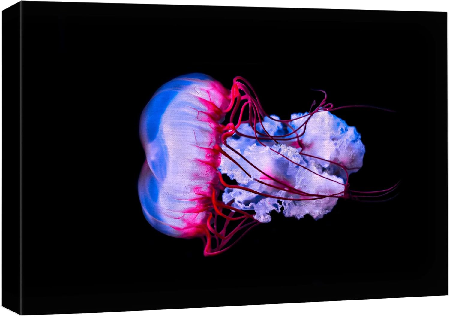 wall26 Canvas Print Wall Art Vibrant Purple Pink Jellyish Dark Ocean Nature Animals Photography Realism Rustic Scenic Landscape Wilderness Earth Colorful for Living Room, Bedroom, Office - 24"x36"