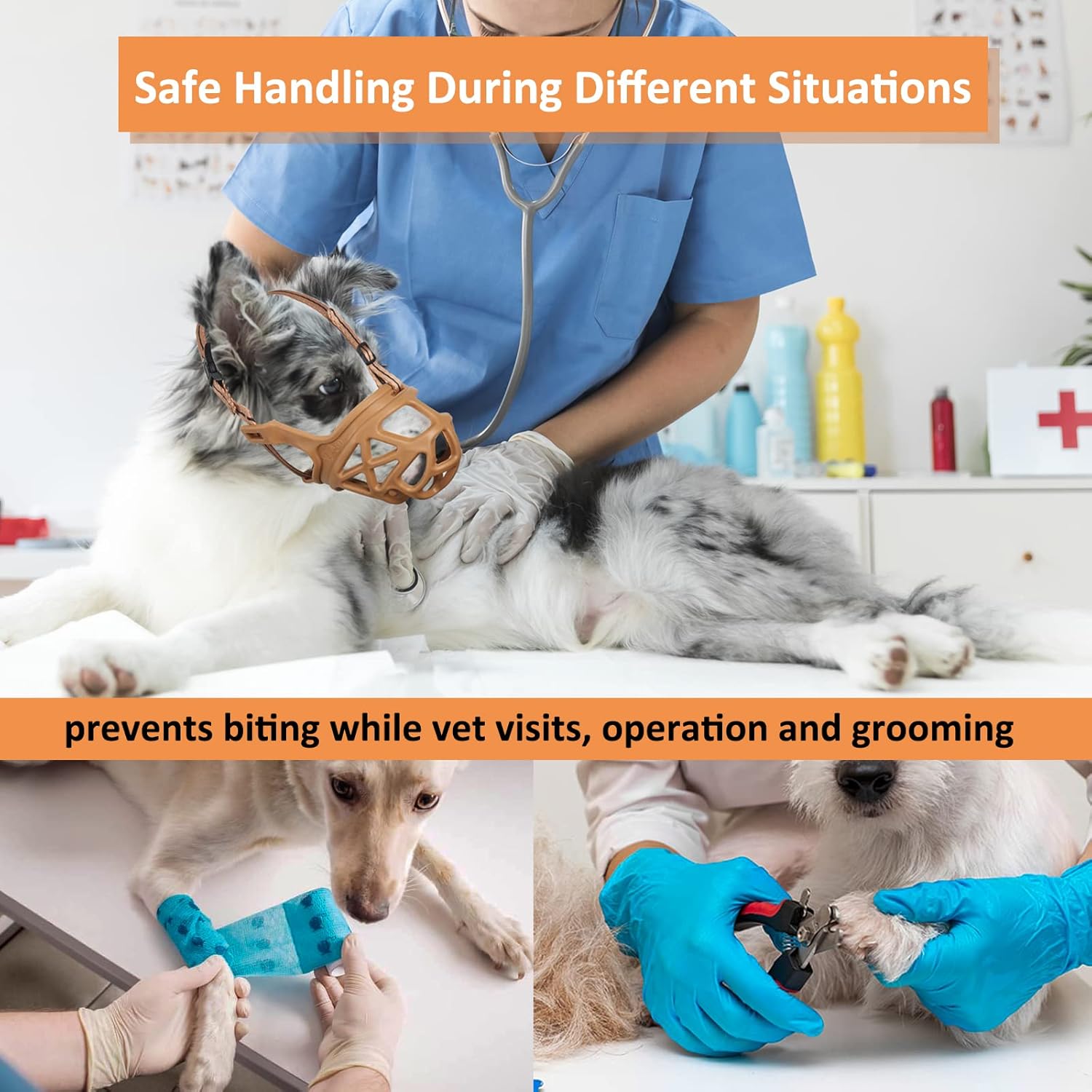 - The Only Muzzle You Need: Say goodbye to your old muzzle. The BARKLESS practical muzzle has features you need to prevent your dog from nipping, destroying, fighting and digging and eating everything while the basket-style design gives all-around mouth protection allowing your pet unrestricted drinking and panting. This muzzle for dogs make it the ideal choice for reactive dogs’ daily walks, occasional use, dog park socialization, grooming, vet visits, training, traveling, and walking