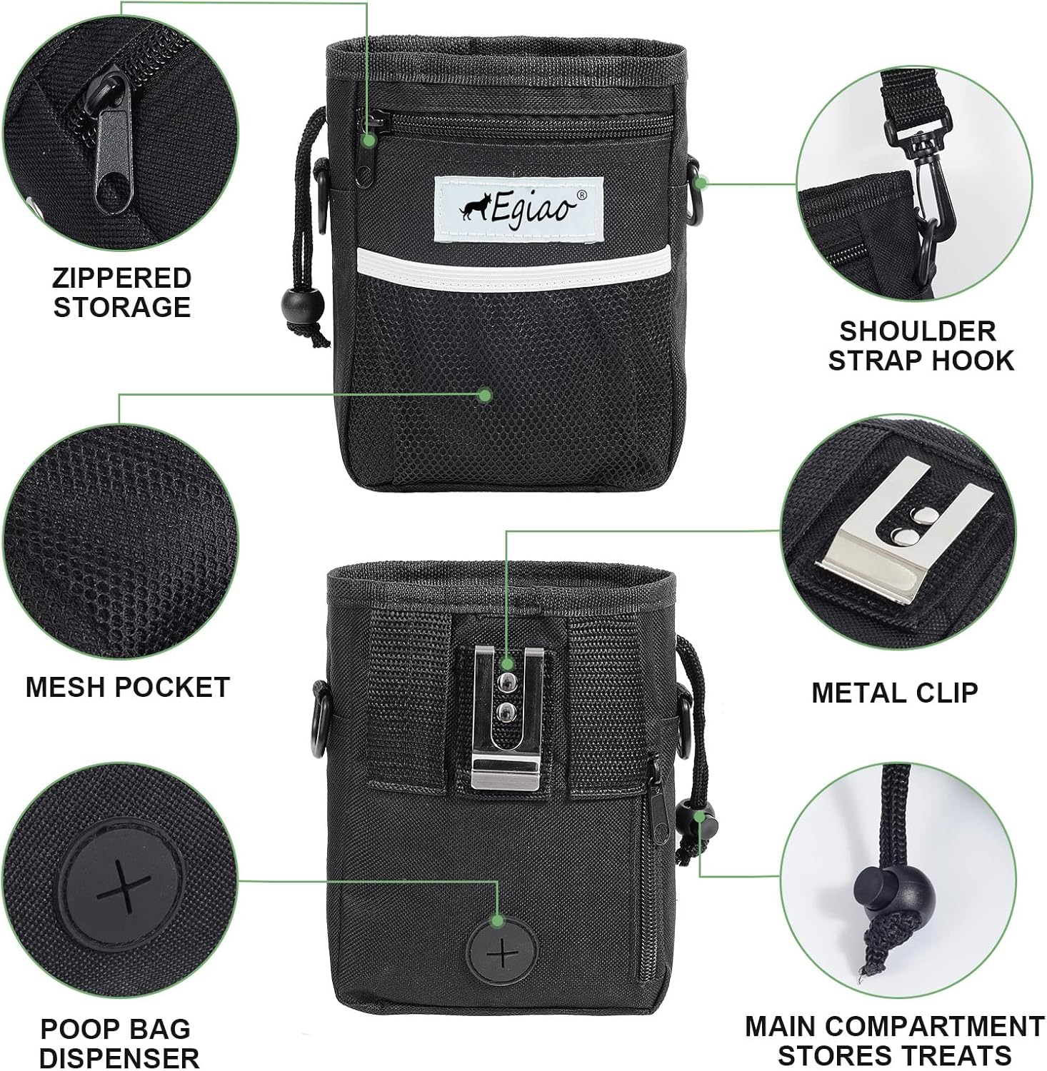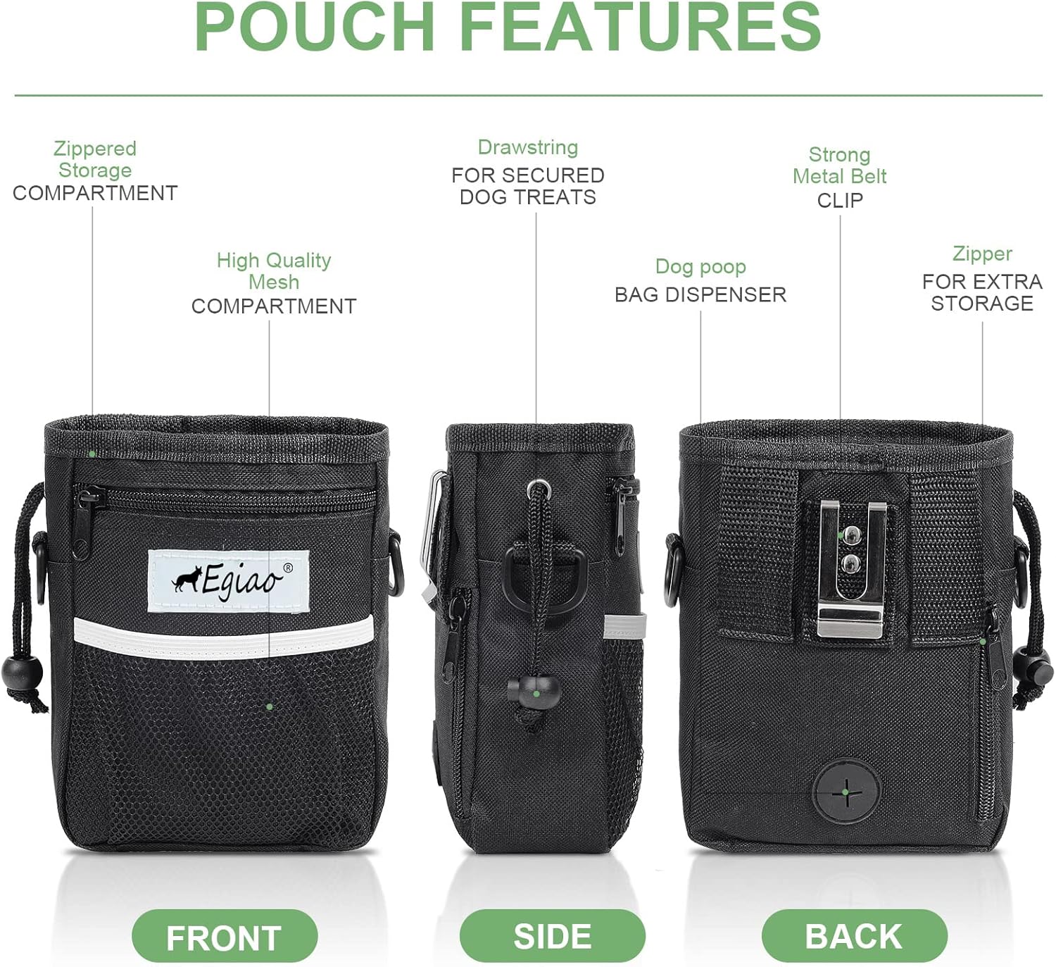 Dog Treat Pouch with Drawstring Closure, Puppy Training Bag, Built-in Pet Poop Bag Dispenser, Waist Belt Clip, 3 Ways to Wear