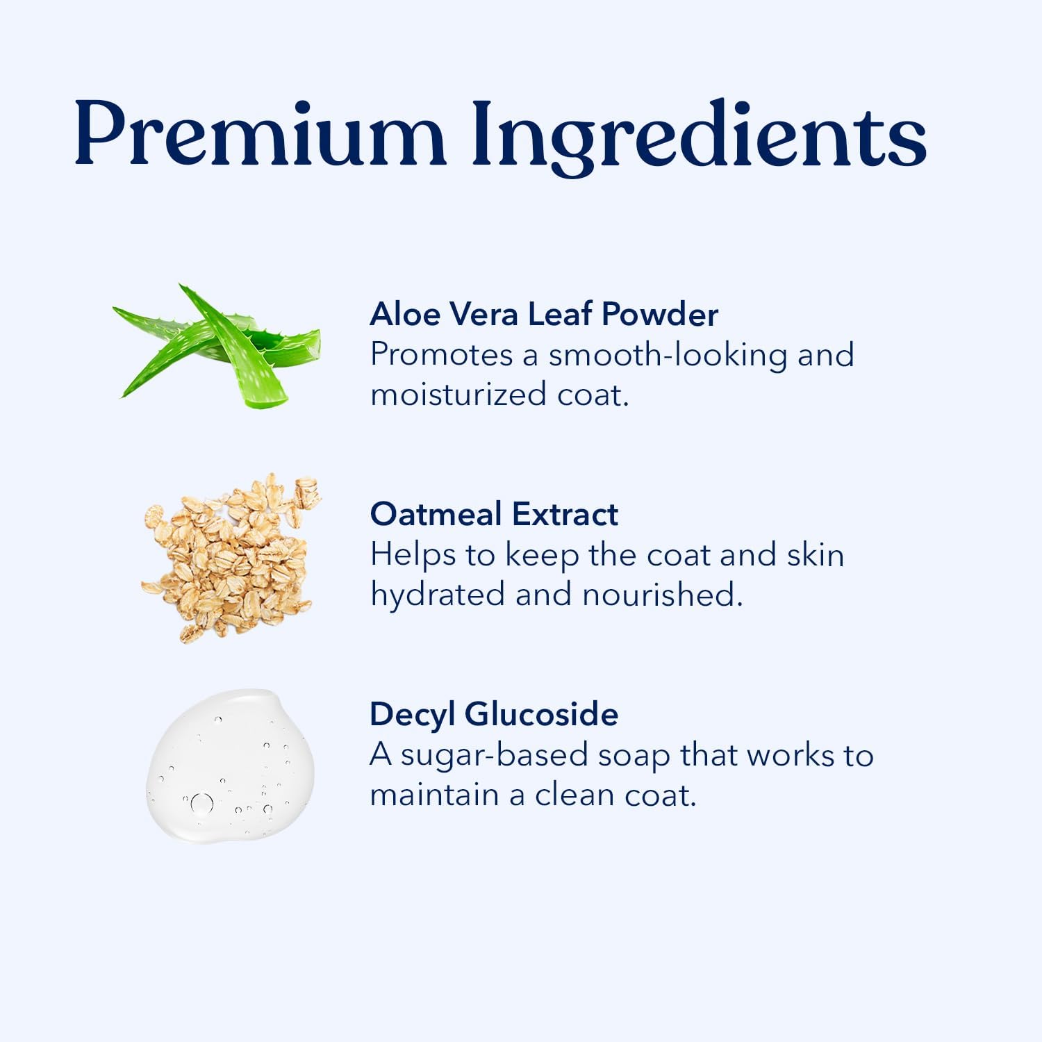 - Calming scent – Our subtle Oatmeal and Lavender fragrance can help calm your pet .