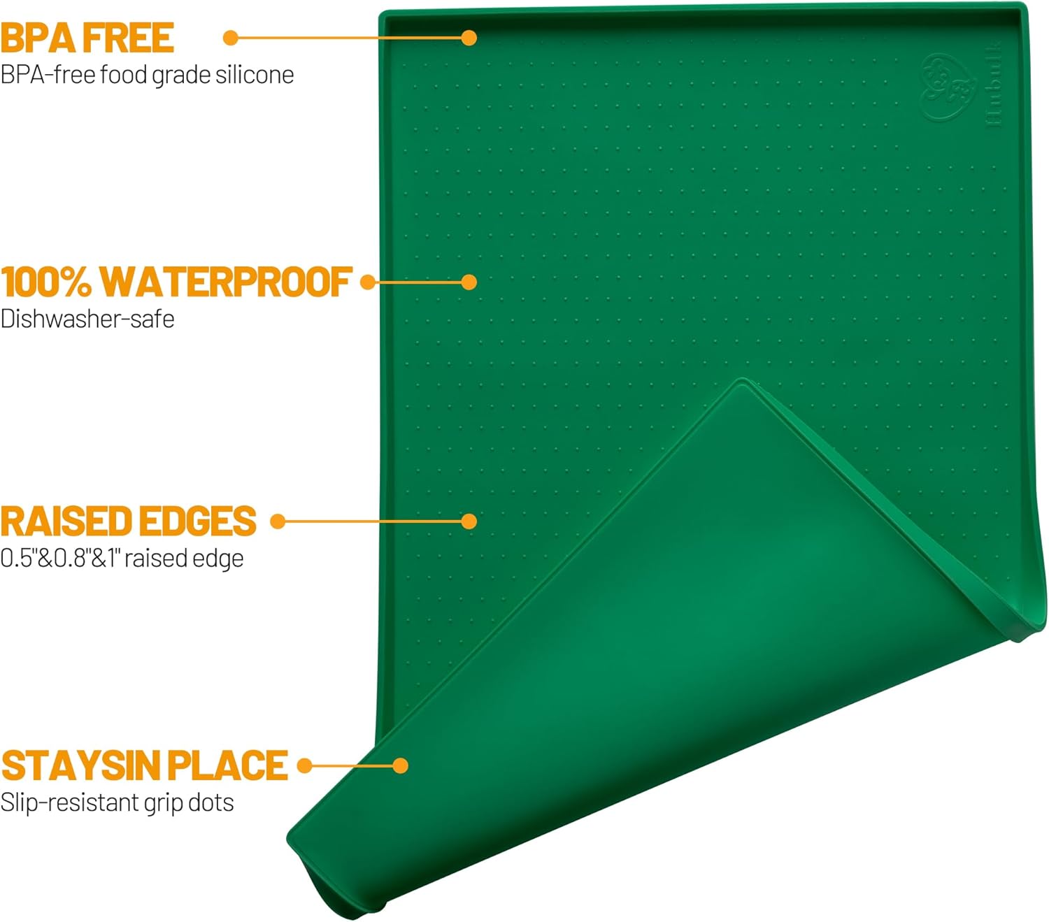 - Dish Washer Safe and Non-Slip Mat: Prevent pet messes with the Hubulk Waterproof Pet Food Mat with Super raised edges. Protect floors from pet bowls, gravity water dispensers, fountains, and elevated feeders.