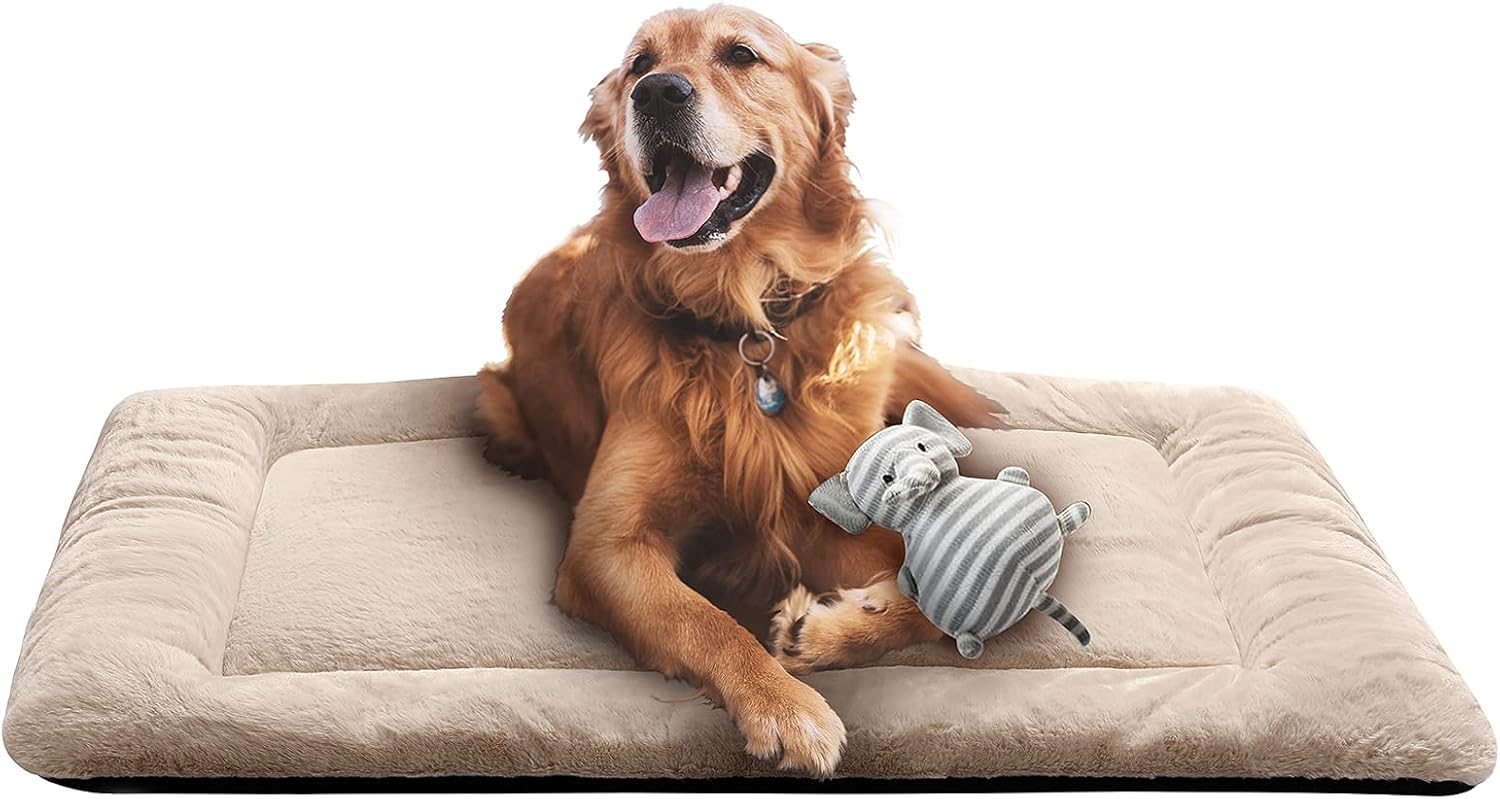 Dog Beds Crate Pad for Large Dogs Ultra Soft Dog Crate Bed Washable & Anti-Slip Kennel Pad for Dogs Cozy Sleeping Mat,Cream 42inch