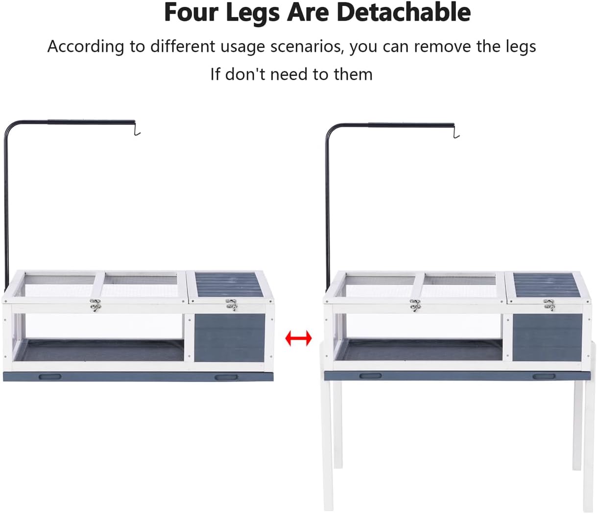 - š¢Multifunctional Tortoise House: This cage is not only a tortoise cage. The bearded dragon could be a good habitat for other small reptiles, such as guinea, pigs, hamster, hedgehogs, rabbits, chicks, lizards, geckos, tortoise and other small animals etc. Detachable legs can be removed according to your needs, you can also put the cage directly on the table.