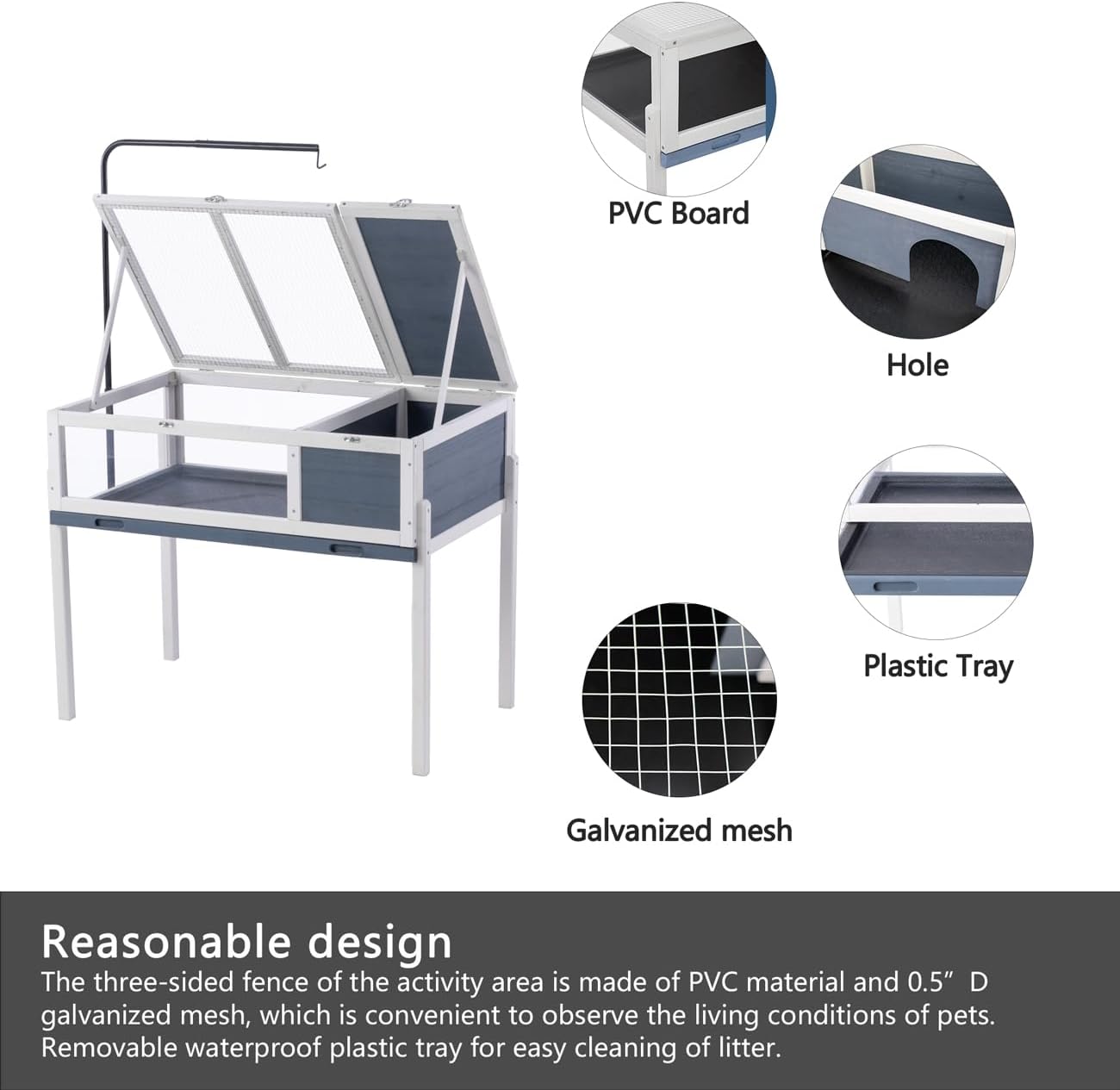 - š¢Easy to Clean & Assemble: Removable tray for easy removal for cleaning, which prevents water leaks. Necessary hardware and instruction provided. This hamster cage takes around 15 minutes to assemble. If you have any questions, please do not hesitate to contact us. We will reply it within 24 hours.