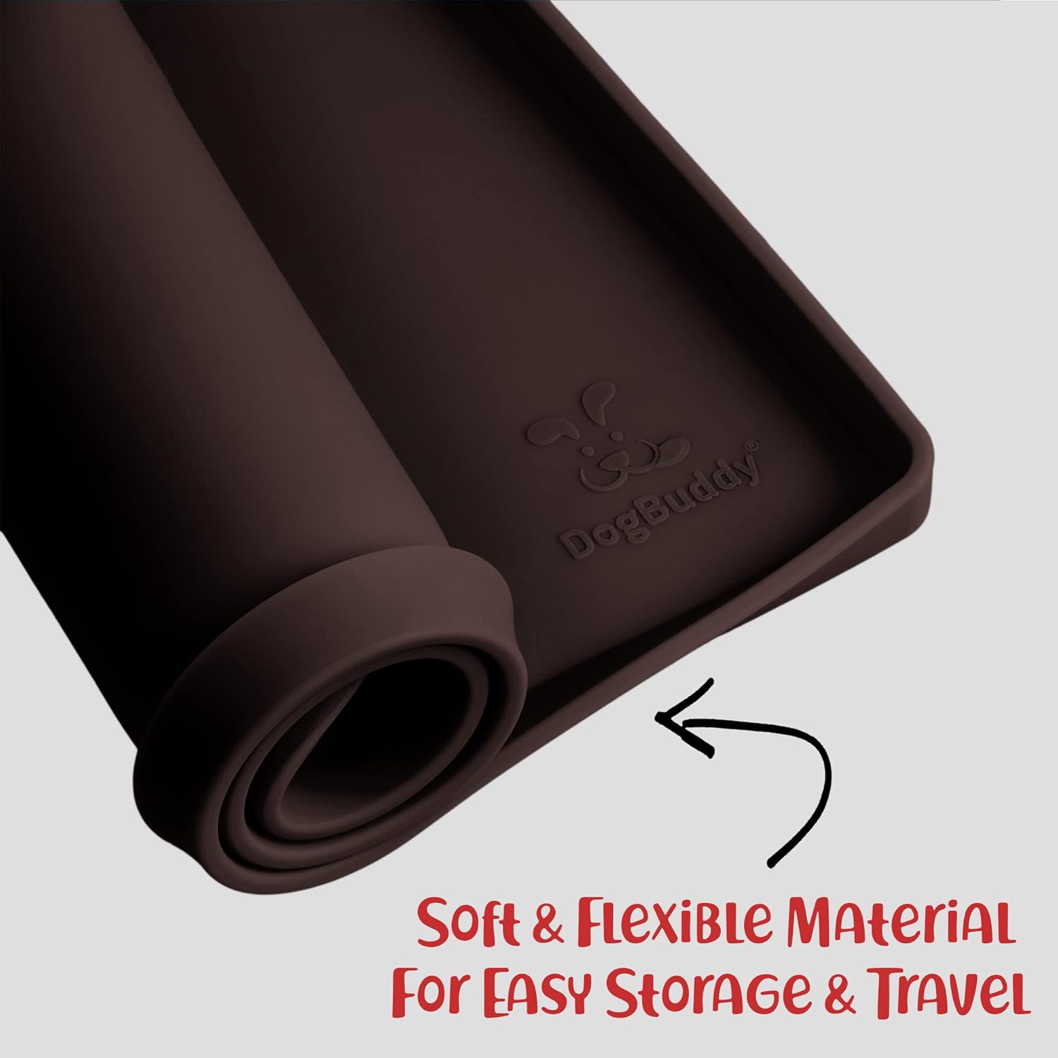 DogBuddy Dog Food Mat – Waterproof Dog Bowl Mat for Food and Water, Silicone Pet Feeding Mats for Floors, Non-Slip Placemat with High Edges for Dogs Bowls, Puppy Essentials (L: 24" x 16", Coffee)