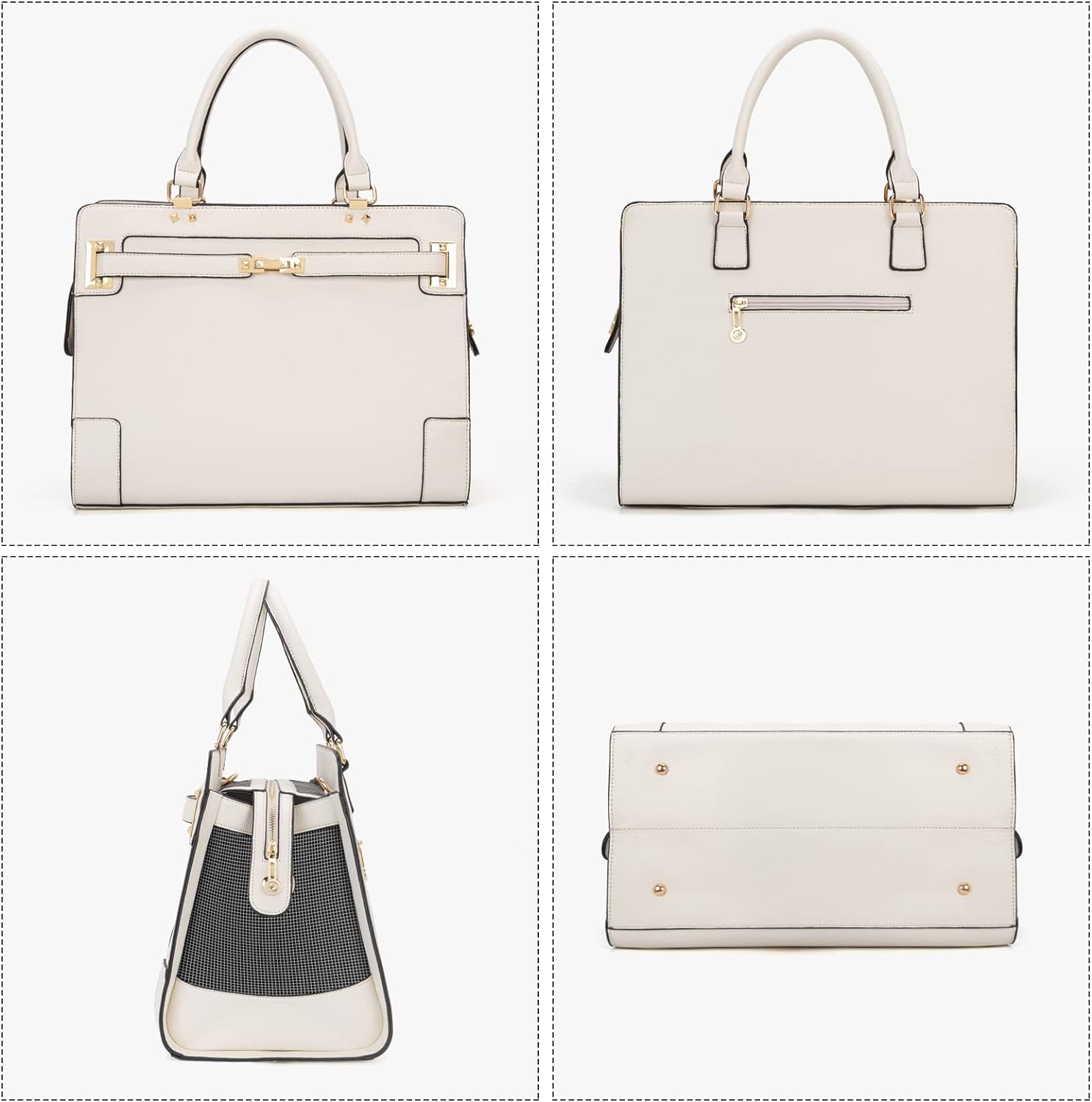 Fashion Pet Carrier Dog Cat Carrier Purse Soft-Sided Leather Handbag Pet Tote Bag for Small Dogs Puppy and Cats TSA Airline Approved (Beige)