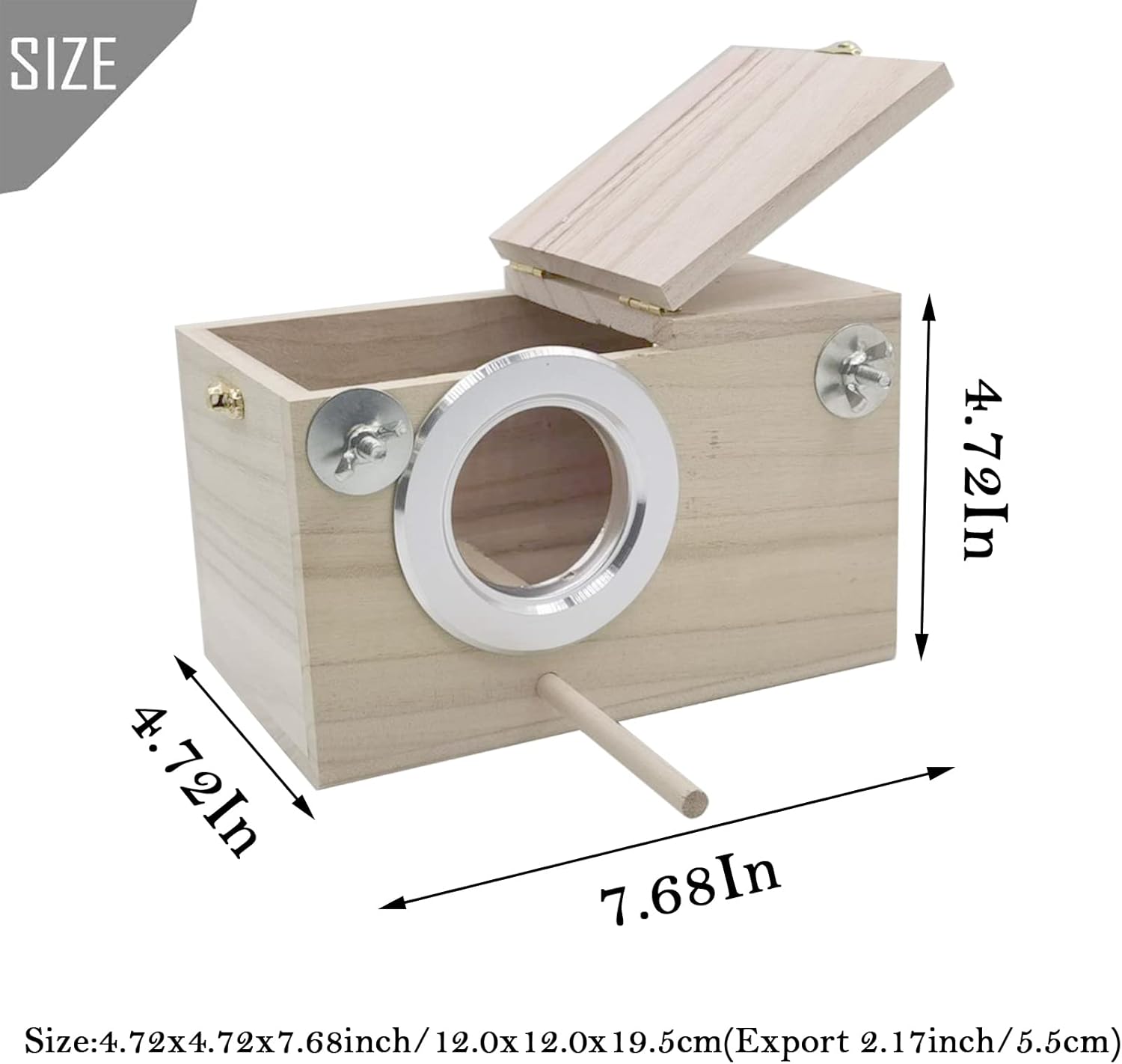- Size:Bird nesting box come in three sizes specifications.S:4.72x4.72x7.68 inches/12.0x12.0x19.5 cm(Export 2.17 inches/5.5 cm);L:11.4x5.9x5.9 inches/29.0x15.0x15.0 cm(Export 2.5 inches/6.5 cm);XL:13.4x6.9x7.7 inches/34.0x17.5x19.5 cm(Export 2.5 inches/6.5 cm). Kind reminder: Please confirm the size of the birdcage and product when purchasing