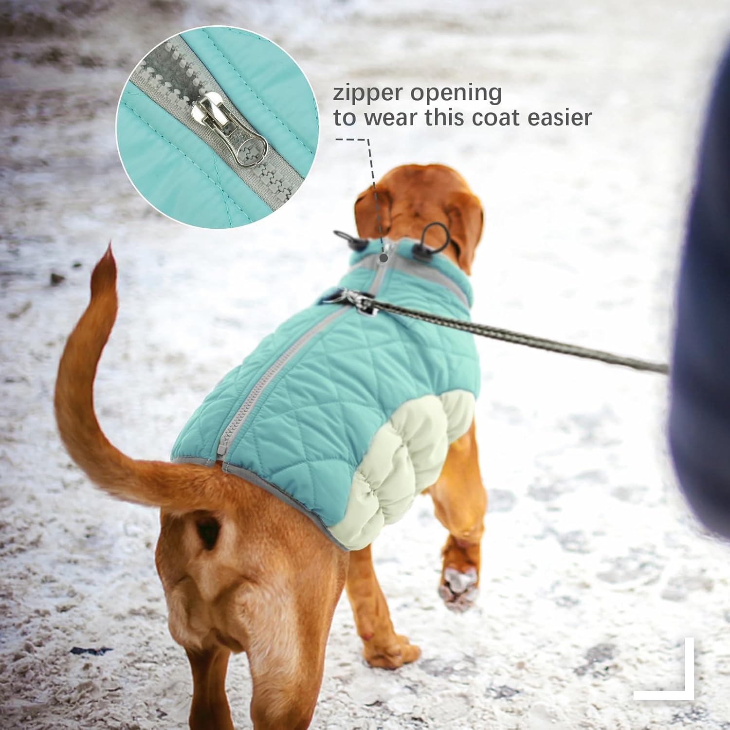 FUAMEY Dog Coat for Large Dogs,Waterproof Dog Winter Jacket with Harness Built in Puppy Cold Weather Coats Reflective Pet Vest with Zipper Warm Fleece Dogs Snowsuit Windproof Mint Green XXL