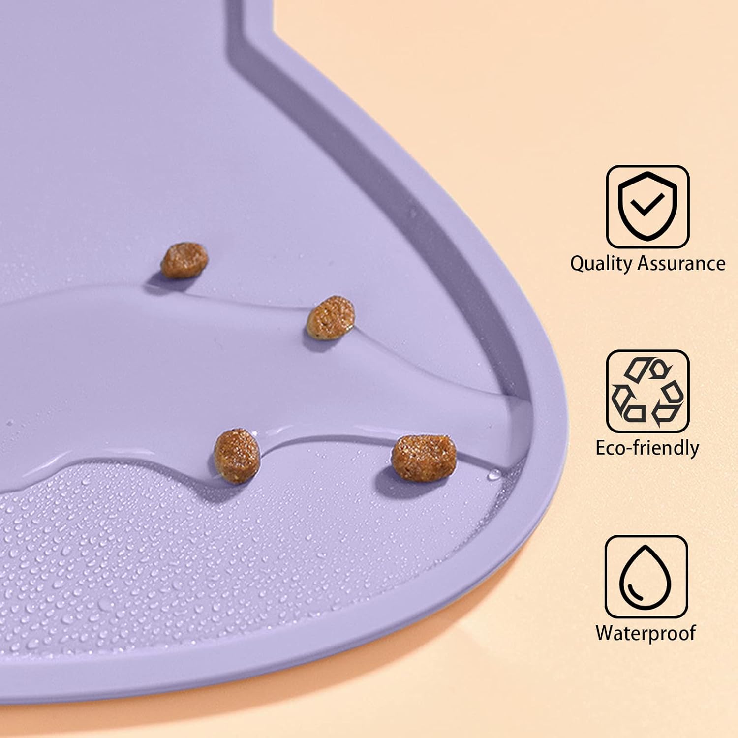 Cat Food Mat, Silicone Pet Feeding Mat for Floor Non-Slip Waterproof Dog Water Bowl Tray Cushion (17" x 10", Periwinkle Blue)