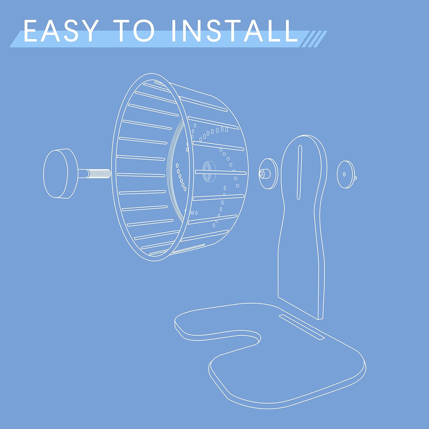 - STURDY - You can complete the installation simply by tightening the wheels and inserting the base without complicated process, placed directly on the flat floor of your pet's home. The wheel can be used either free-standing, with the supplied stand, or be attached to wire hamster homes.