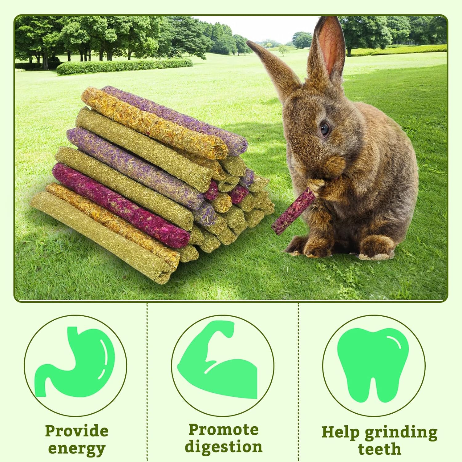- 🐰 [Variety Of Taste]: Package contains 50 pcs timothy grass sticks, 18 pcs mixed petal grass sticks, a total of 68 PCS delicious small pet snacks, enough quantities to let your furry friends enjoy the joy of chewing!