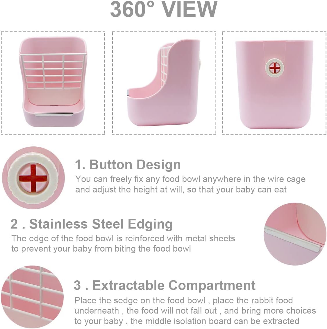- 🐹【Small animal automatic feeder】The design of food bowl + grass rack, provides more choices for pets, and the rack is easy to disassemble, which can provide more space for placing food.