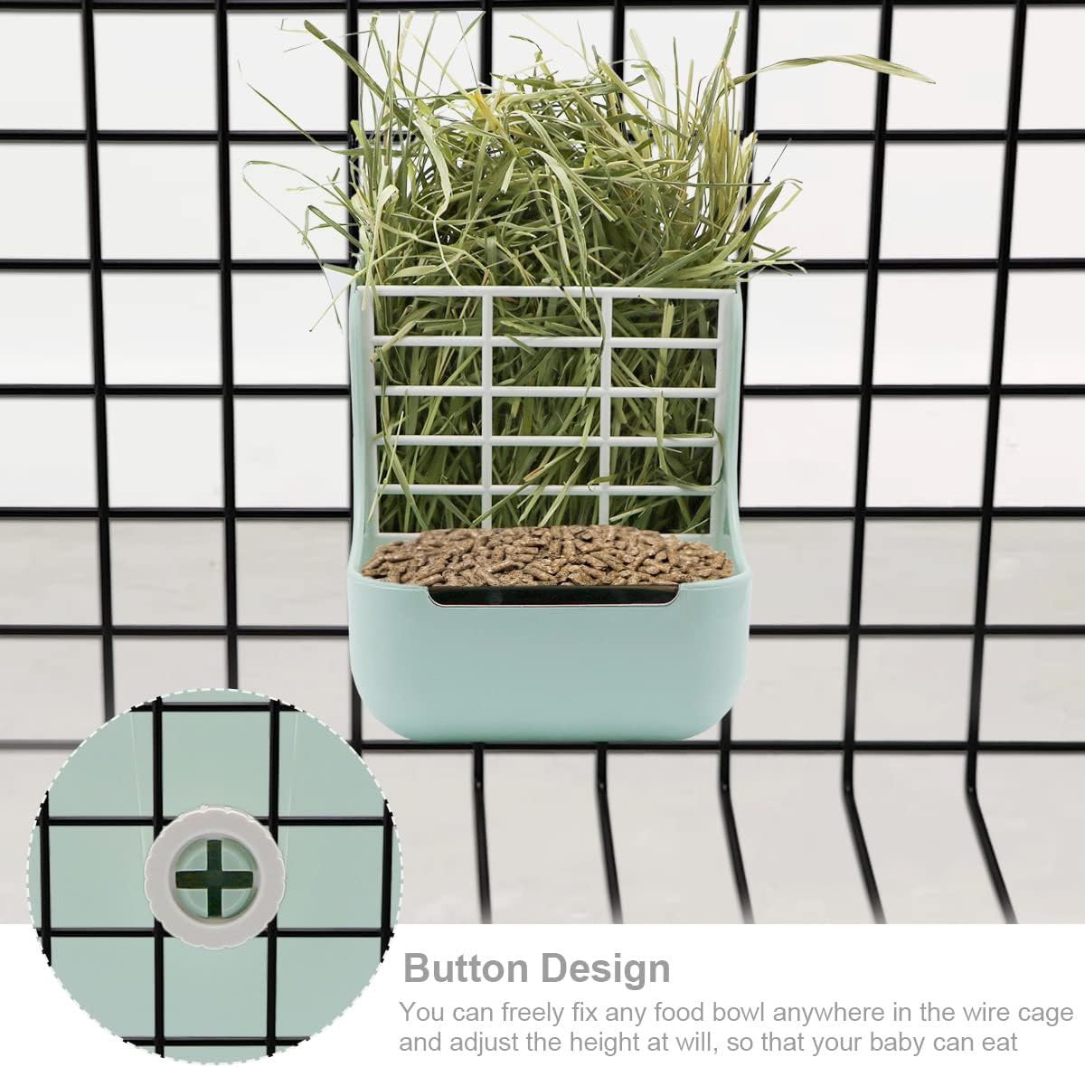 - 🐹【Small animal automatic feeder】The design of food bowl + grass rack, provides more choices for pets, and the rack is easy to disassemble, which can provide more space for placing food.