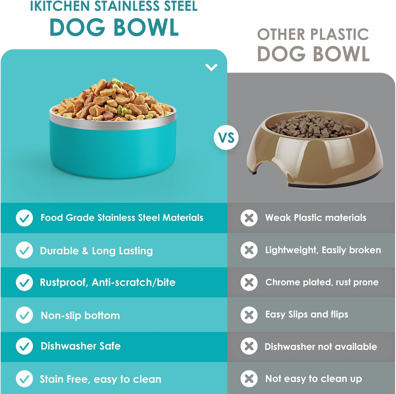 IKITCHEN Dog Bowl for Food and Water, 64 Oz Stainless Steel Pet Feeding Bowl, Durable Non-Skid Double Wall Insulated Heavy Duty with Rubber Bottom for Medium Large Dogs (64 Ounces/8 Cup, Lakeblue)