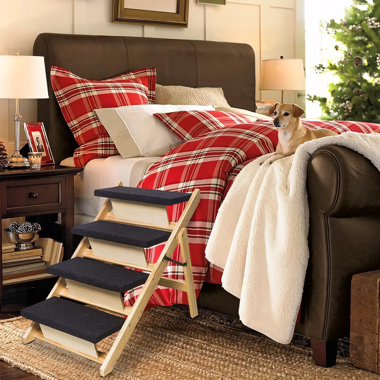BRIKY 2-in-1 Dog Stairs/Ramp with 4 Steps, Foldable Dog Stairs for High Beds Cars Couch, Durable Wooden Pet Stairs for Small Medium Large Dogs, No Assembly Required