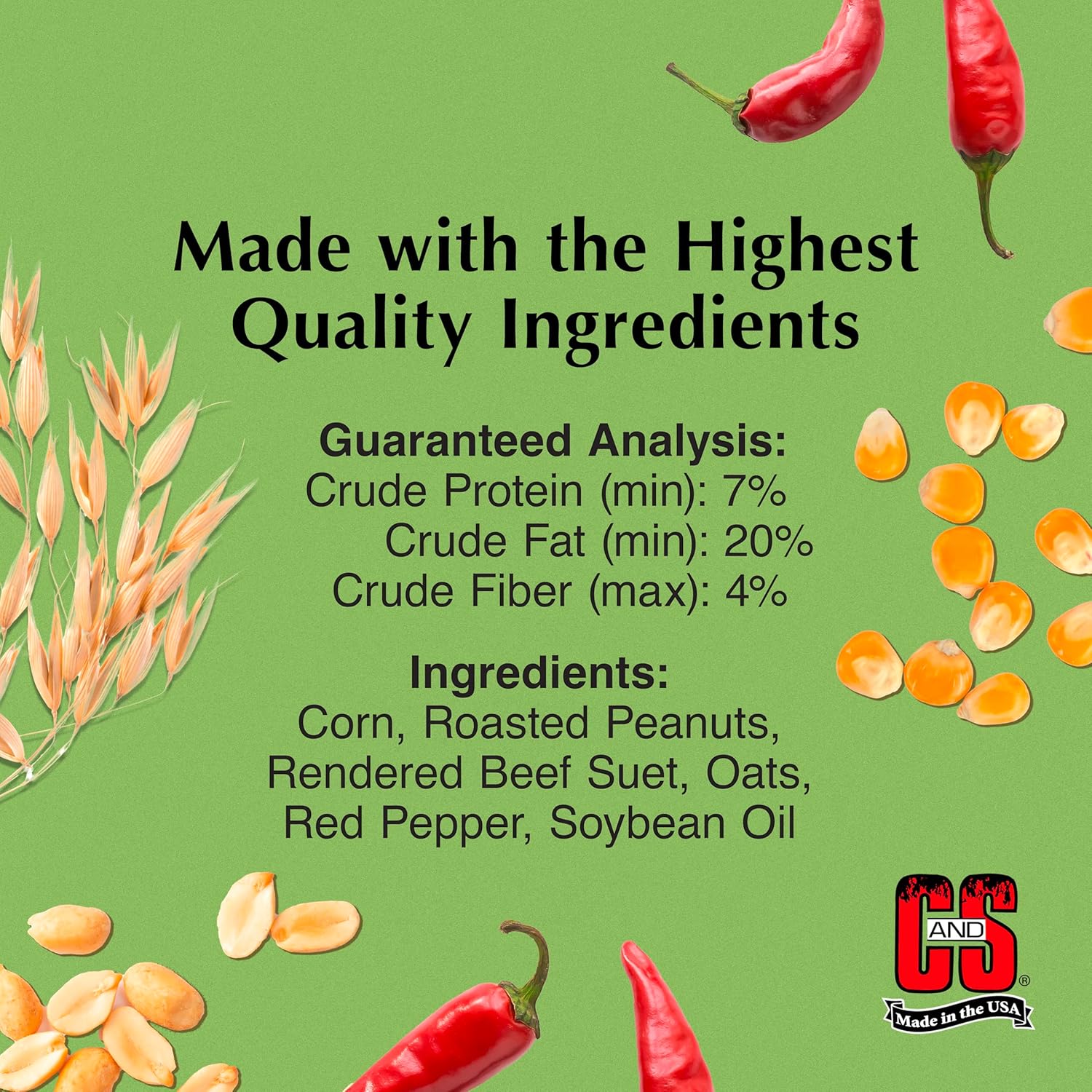 - HOT PEPPER NO MELT FORMULA is safe and enjoyable for birds to consume and won’t interest unwanted animals that visit bird feeders like squirrels, skunks, opossums, racoons, and more.