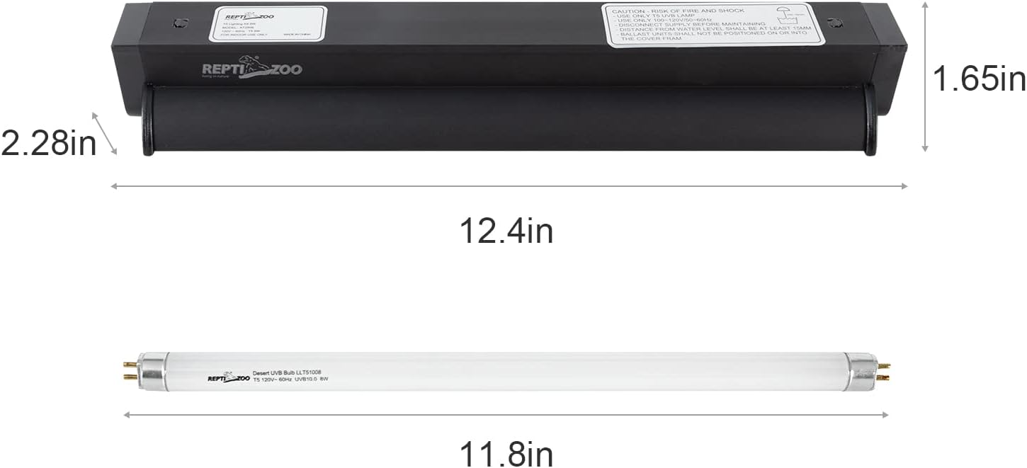 - Comes with Desert 10.0 UVB T5 Lamp - Provides UVB light rays which are required for reptiles to metabolize essential calcium; Stimulates appetite, activity and reproductive behavior through UVA radiation. Ideal for desert dwelling reptiles. (24W - Great for 24" Enclosures ; 39W - Great for 36" Enclosures; 54W - Great for 48" Enclosures.)