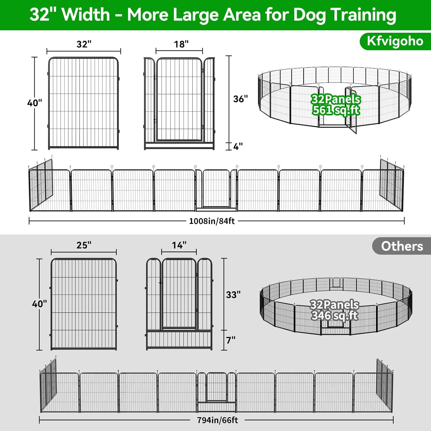 Dog Playpen Outdoor Extra Wide 32 Panels Heavy Duty Dog Fence 40" Height Anti-Rust with Doors Portable for RV Camping Yard, Total 84FT, 561 Sq.ft, Snowy Black