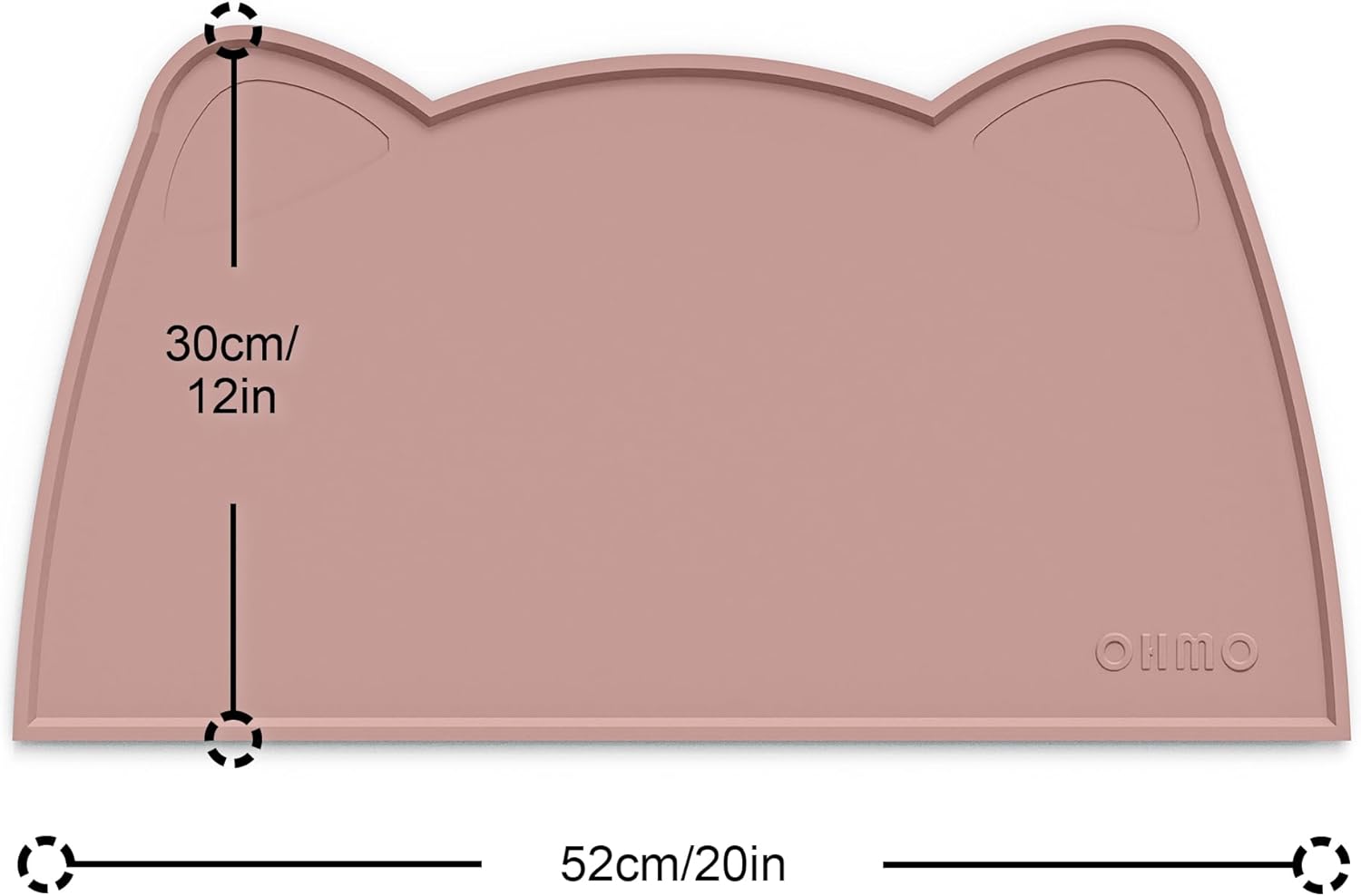 OHMO - Cat Food Mat, Silicone Pet Feeding Mat for Floor Non-Skid Waterproof Dog Water Bowl Tray, Easy to Clean Pet Placemat(Rose, 20 * 12")