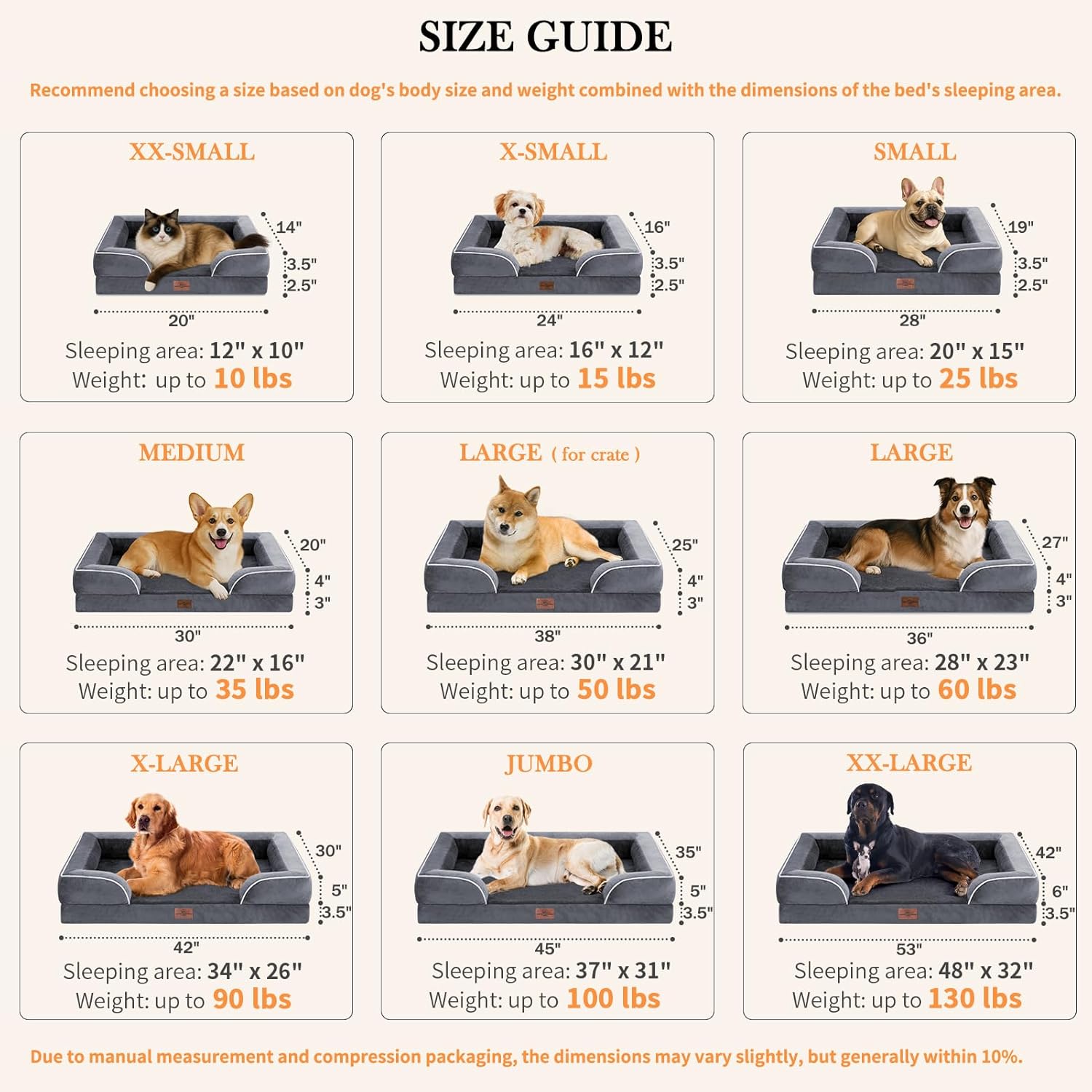 Comfort Expression XL Dog Bed with Bolster, Waterproof Orthopedic Foam Dog Beds for Extra Large Dogs, Washable Dogs Sofa Pet Bed with Removable Cover & Non-Slip Bottom(X-Large,Dark Grey)