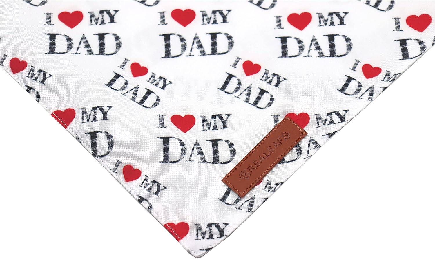 Realeaf Fathers Day Dog Bandanas 2 Pack, Reversible I Love My Dad Pet Scarf for Boy and Girl, Premium Durable Fabric, Bandana for Small Medium Large and Extra Large Dogs (Small)