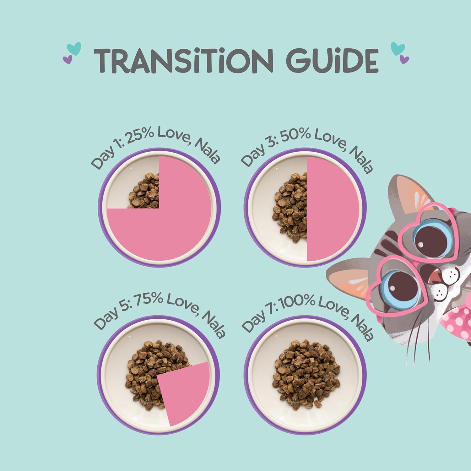 - PURE and NATURAL INGREDIENTS: LOVE, NALA is committed to keeping our products real and wholesome. Our cat food recipes contain no additives, artificial flavors, colors, or fillers. Crafted with utmost care, our beef, chicken, and turkey formulas prioritize your cat's well-being and happiness. Every ingredient is thoughtfully chosen to support your cat's overall health and vitality, ensuring that every bite is a step toward their well-being.