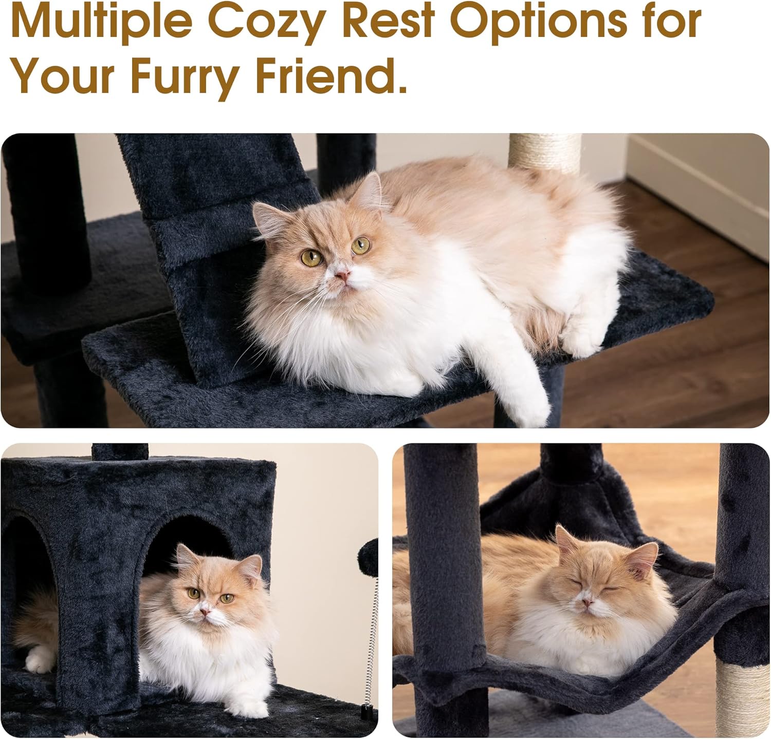 - Ideal for Multi-Cat Households: This multifunctional cat tower features a soft hammock, sisal-wrapped scratching posts, and interactive toys for mental stimulation and solo play