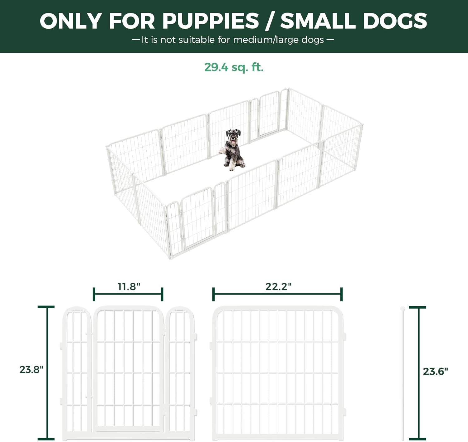 FXW Homeplus Unleashed Indoor Dog Playpen - Stress-Free and Safe Play, Heavy Duty 24 Inch 12 Wire Panels Dog Pen for Puppy and Small Dogs, White│Patented