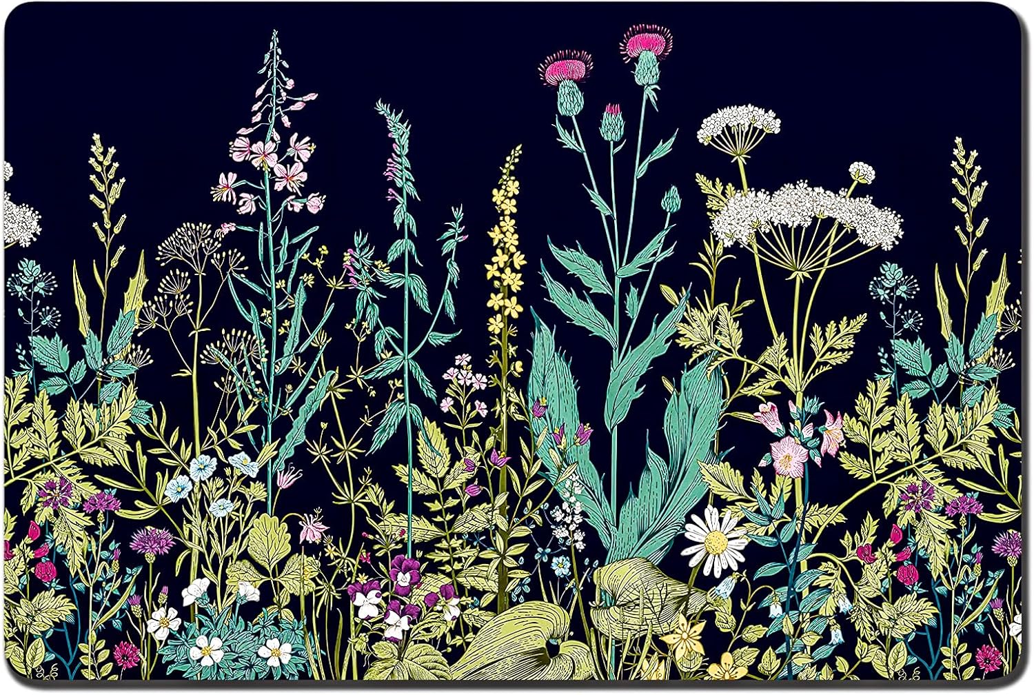 Rnivvi Dog Food Mat, 12" x 19" Flower Absorbent Dog Cat Bowl Mat for Food and Water, Cute Anti-Slip Rubber Pet Feeding Rug Protect Floors, Puppy Placemat for Feeding & Watering Supplies,Black Floral