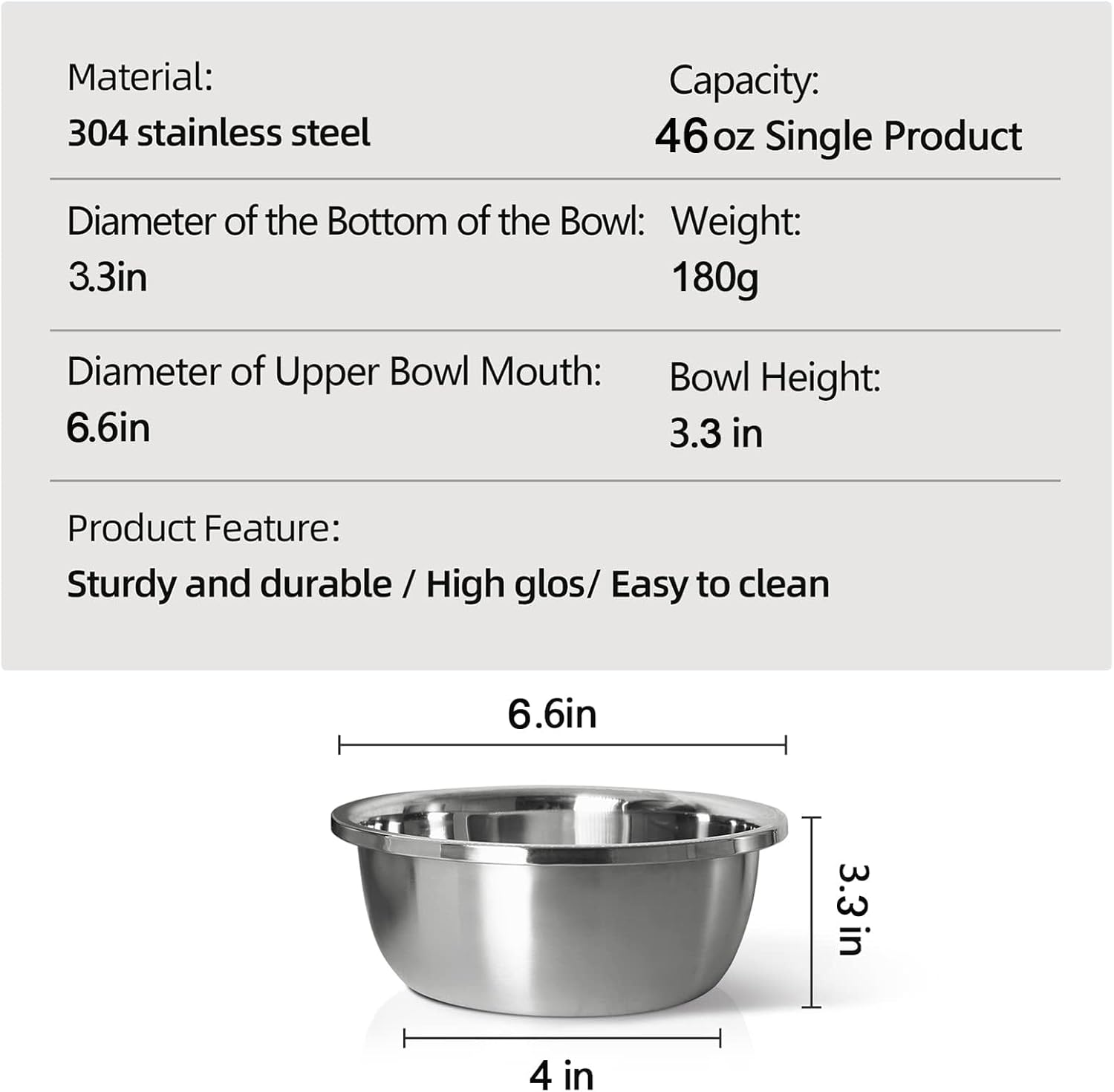 Stainless Steel Large Dog Food Bowl, 46 oz (7cup) Large Capacity Dog Water Bowl, Heavy Duty, BPA-Free for Medium and Small Dogs (2 pcs)