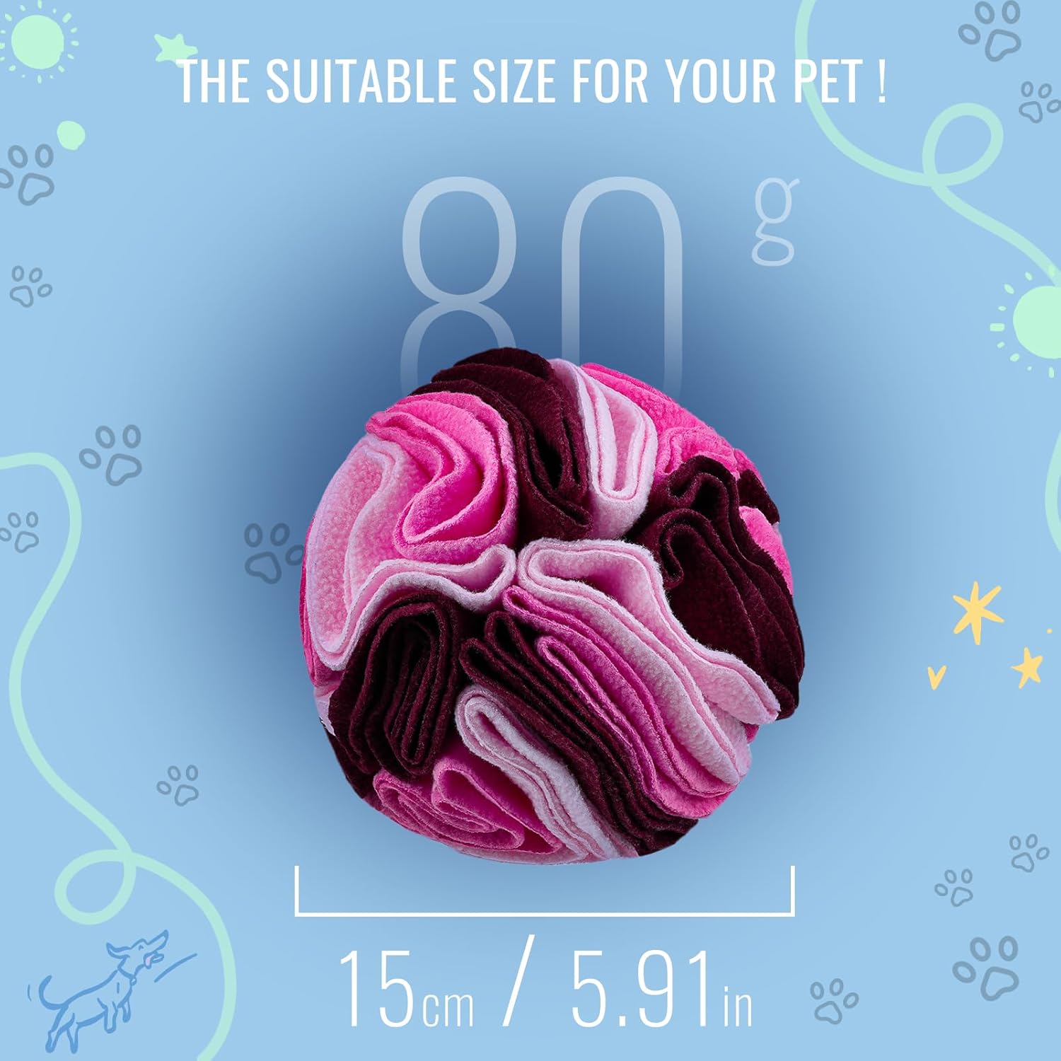 Pet Snuffle Ball, Puzzle Sniffing Interactive Dog Ball for Blind Dogs Training Stress Relief Dog Enrichment Toys Treat Machine Washable (15cm, Fantasy Pink)