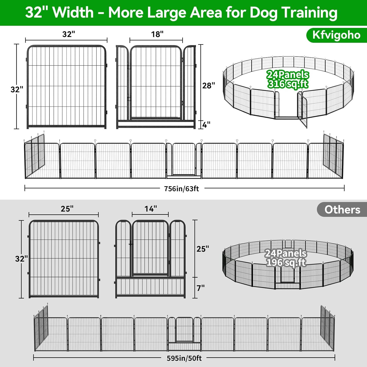 - 【Anti-Rust Coatings Material】Kfvigoho puppy playpen made of heavy-duty metal, sturdy and durable, steel wire smooth and solid, pet dogs couldn't damage or chew it, anti-corrosion coatings and rust-proof process helps panels works well outdoor and extend its life, the indoor and outdoor dog pen great for people with dogs