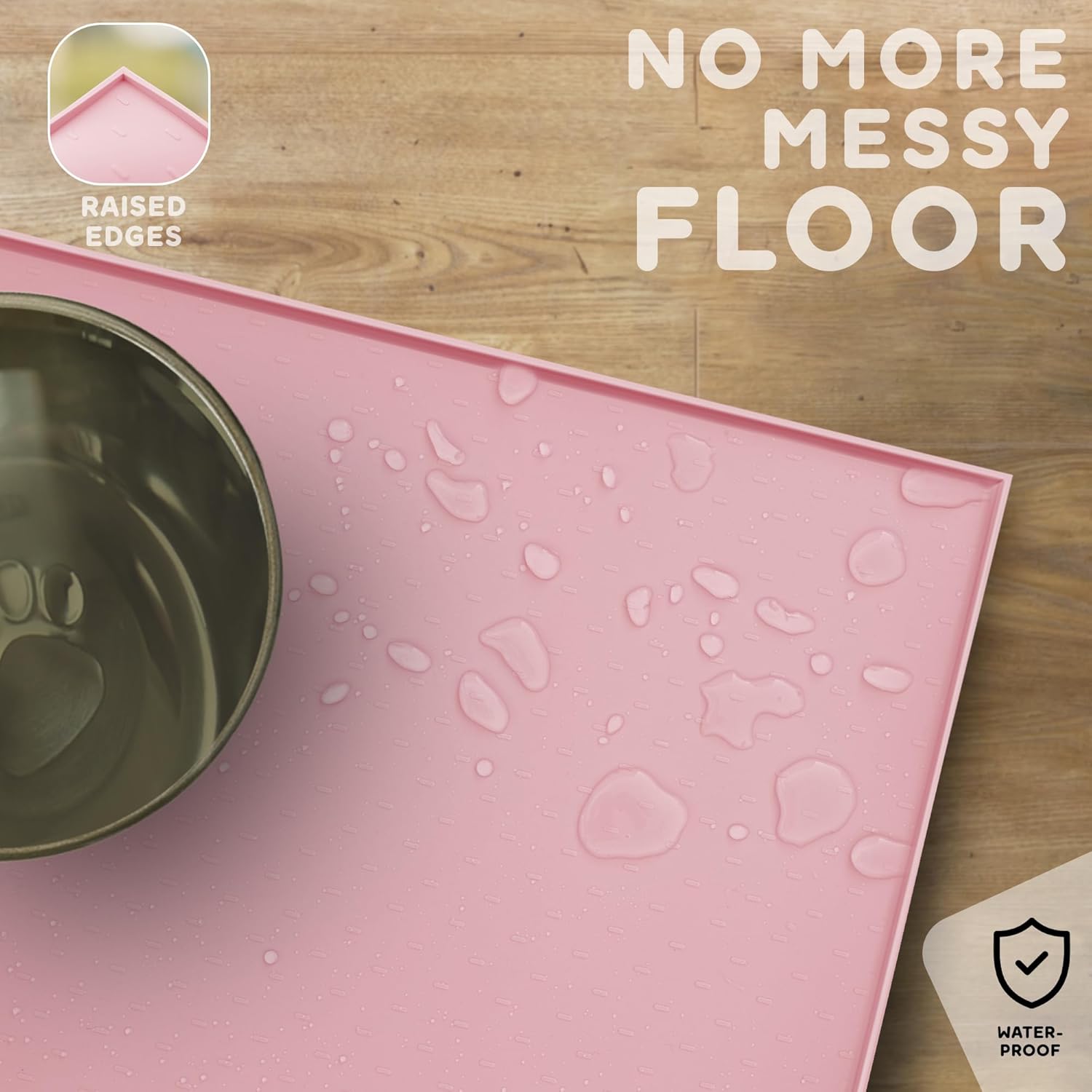 Dog Food Mat - 24x15 Raised Edges Dogs Mat for Food and Water Prevent Spill, Waterproof Cat Food Mats Protect Floors, Easy Clean Dog Bowl Mats for Food and Water, Silicone Pet Feeding Placemats Pink