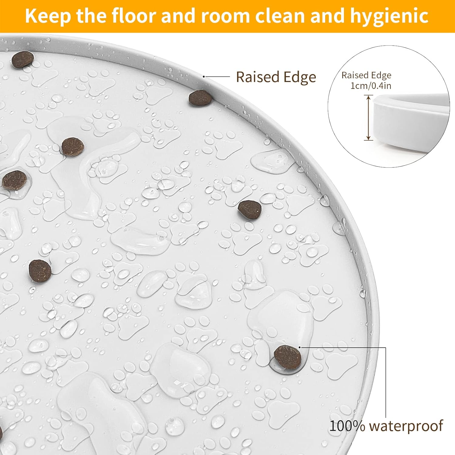 - 100% Waterproof and Anti-Slip: Our dog bowl mat with high-lip edges. Leak-proof pet placemats can prevent food and water overflow, and protect the floor. Prevent pets from eating contaminated food. Non-slip silicone mat keeps the bowl in place.