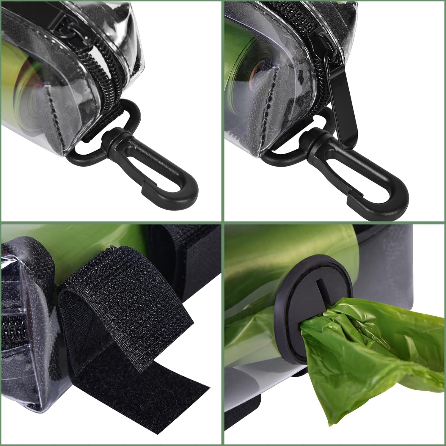 - DOG POOP BAG DISPENSER - Made of premium PVC material, more wear resistant and waterproof. A big enough room to hold 1 or 2 rolls of dog poop bags, money, keys, and even dog treats. And the hole in the middle for pulling out bags one by one. Just put all your need in this bag & enjoy your outing with much more convenience.