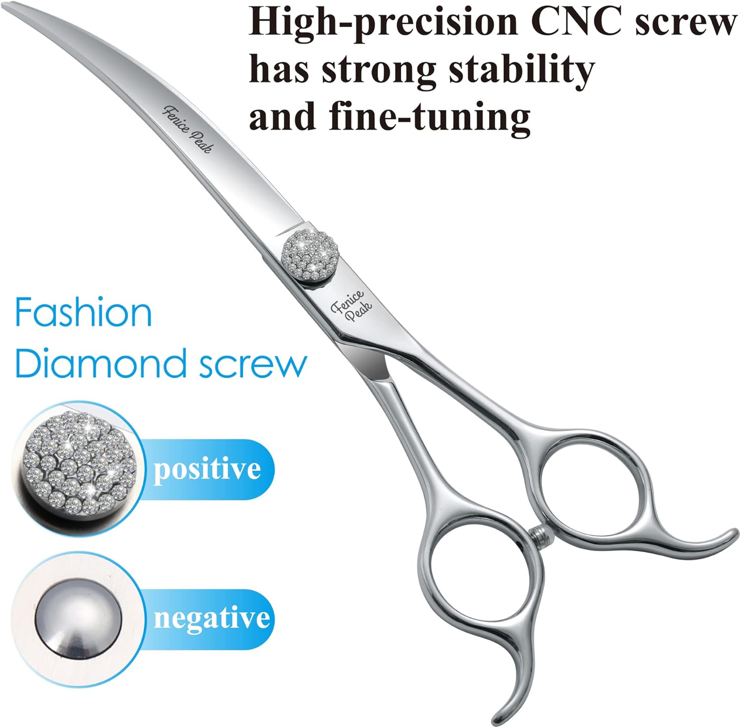 Fenice Peak 6.5‘’ Extra Curved Dog Grooming Scissors with Jewelled Screw 440C Stainless Steel Pet Grooming Bending Scissors with Symmetrical Handle for Professional Groomer and Home User